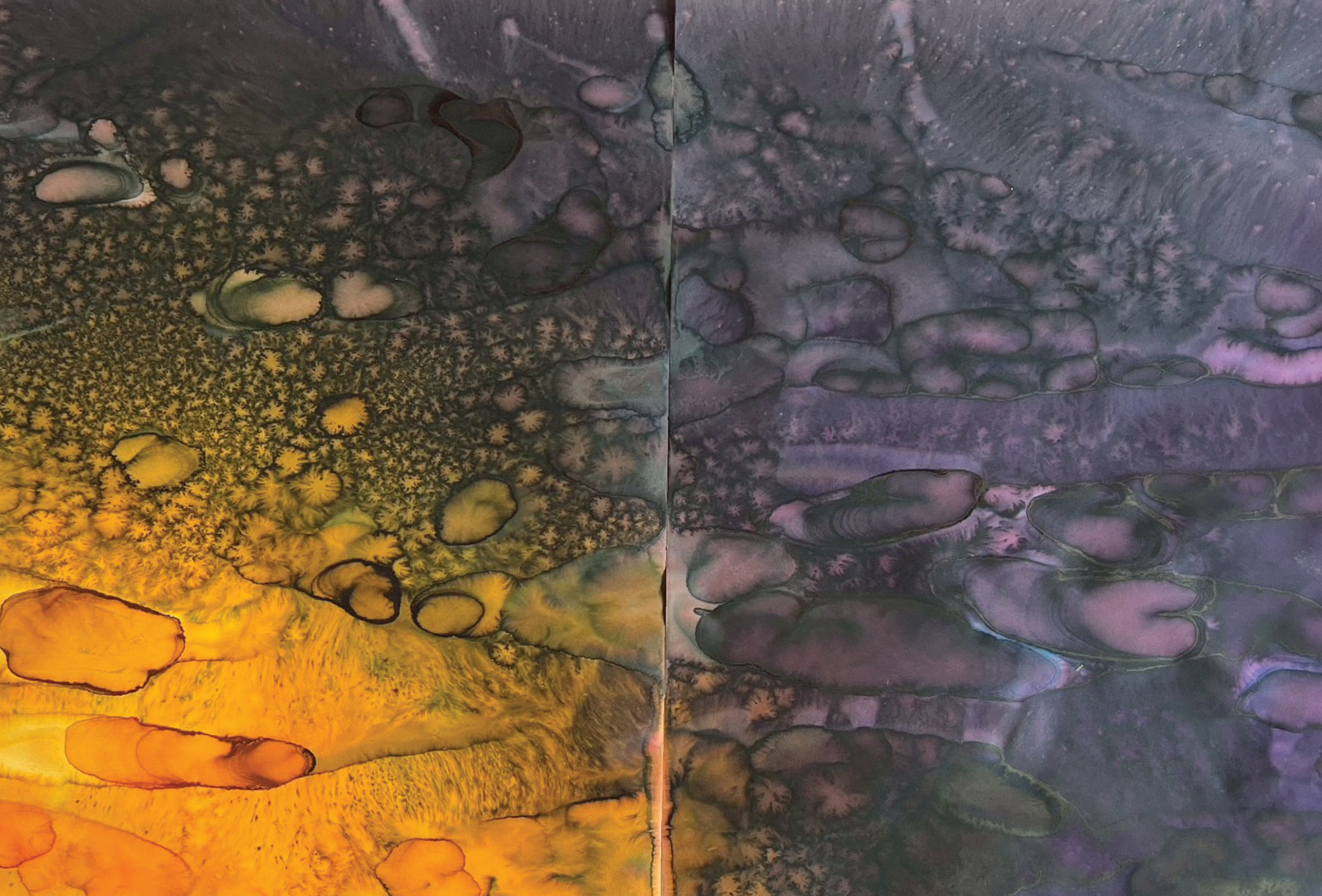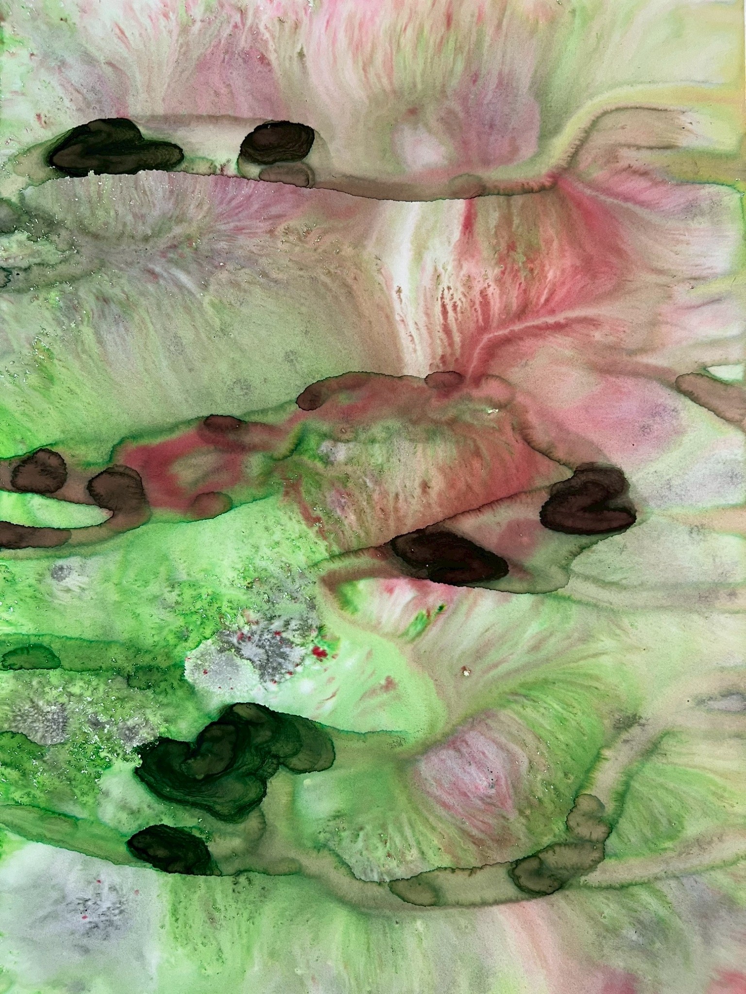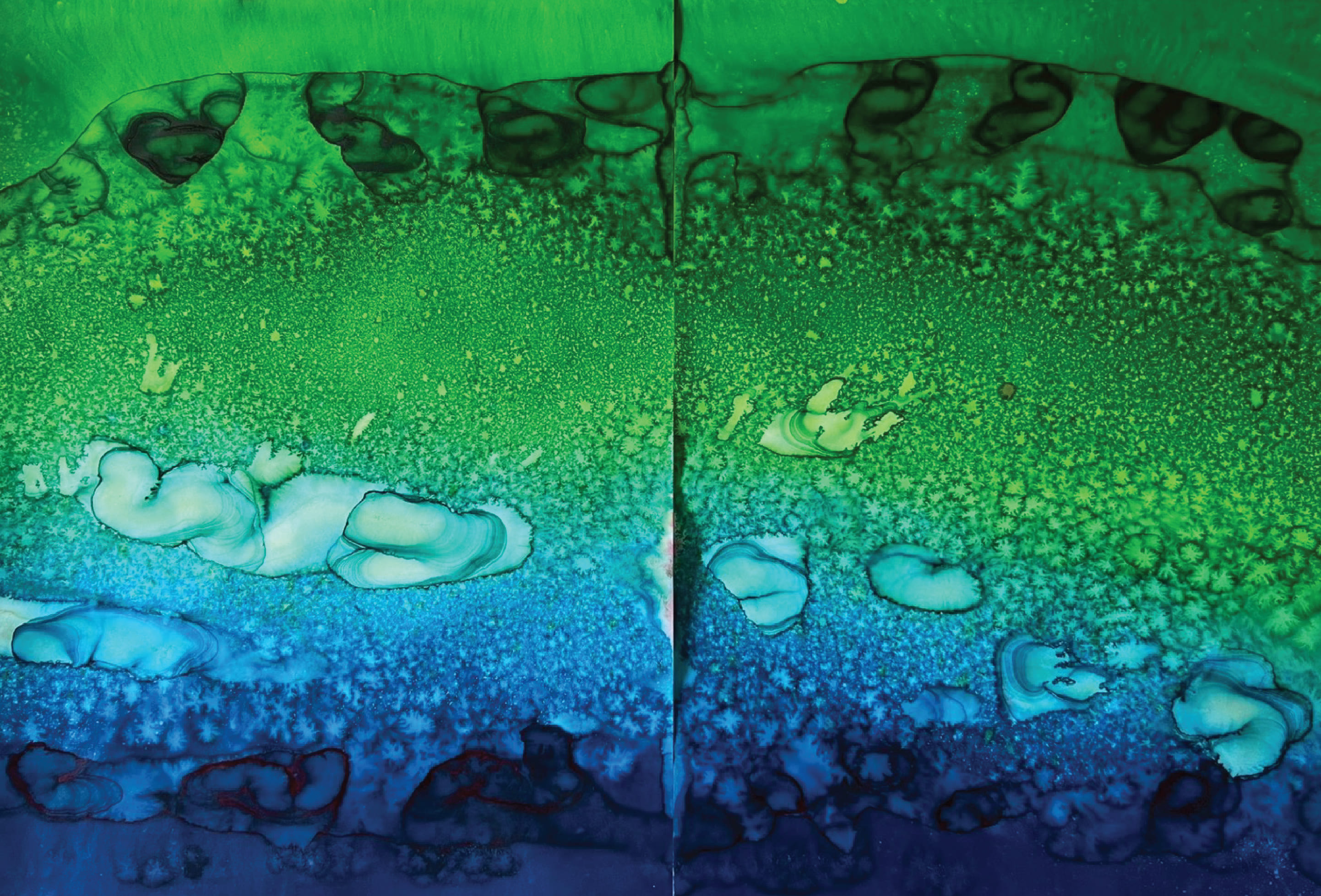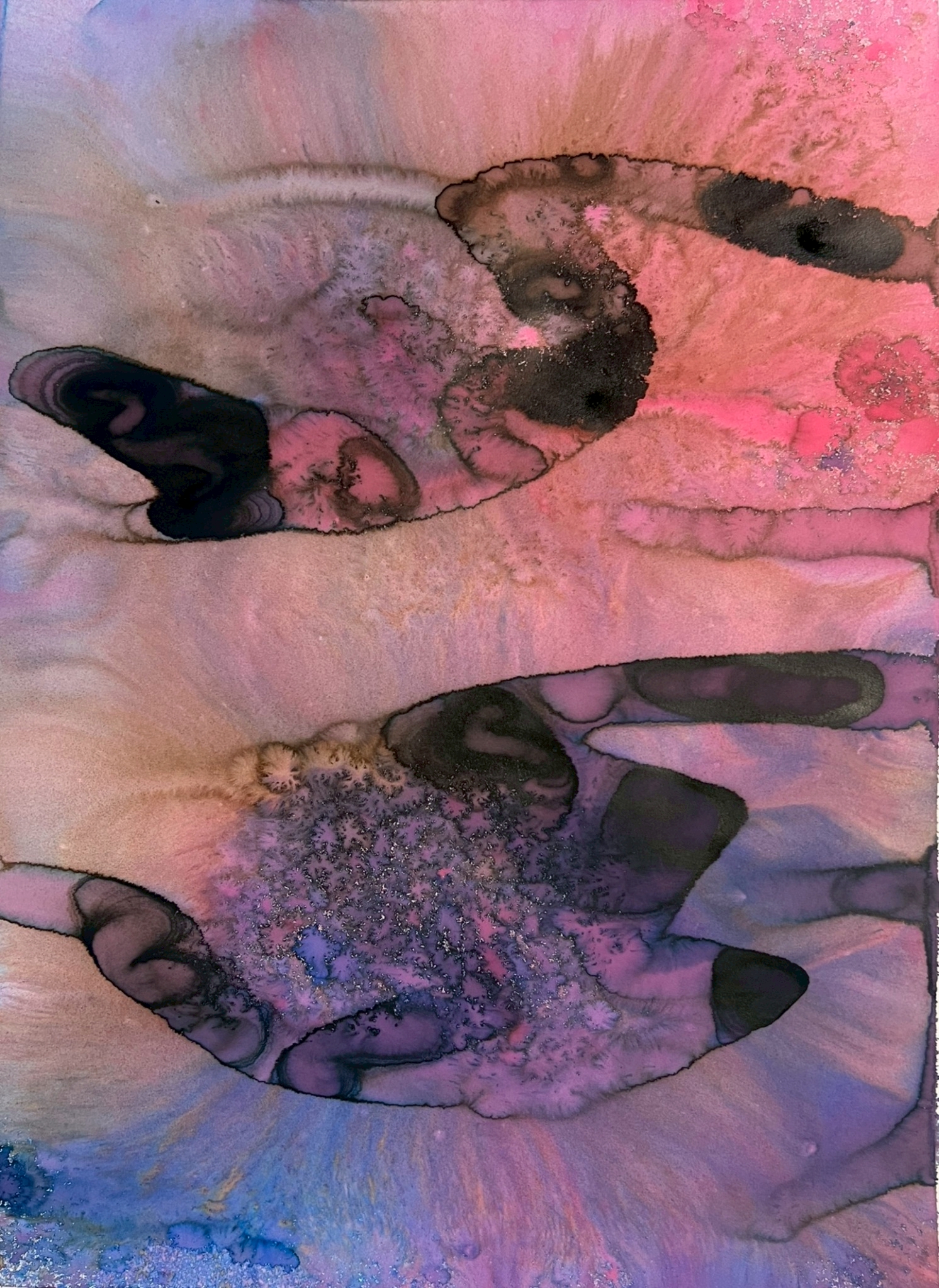 Fields of Conditions investigates the formation of reality through the interplay of forces—liquid, pigment, temperature, flow, and surface—none of which acts as a singular determinant, but rather as conditions that enable form to emerge.