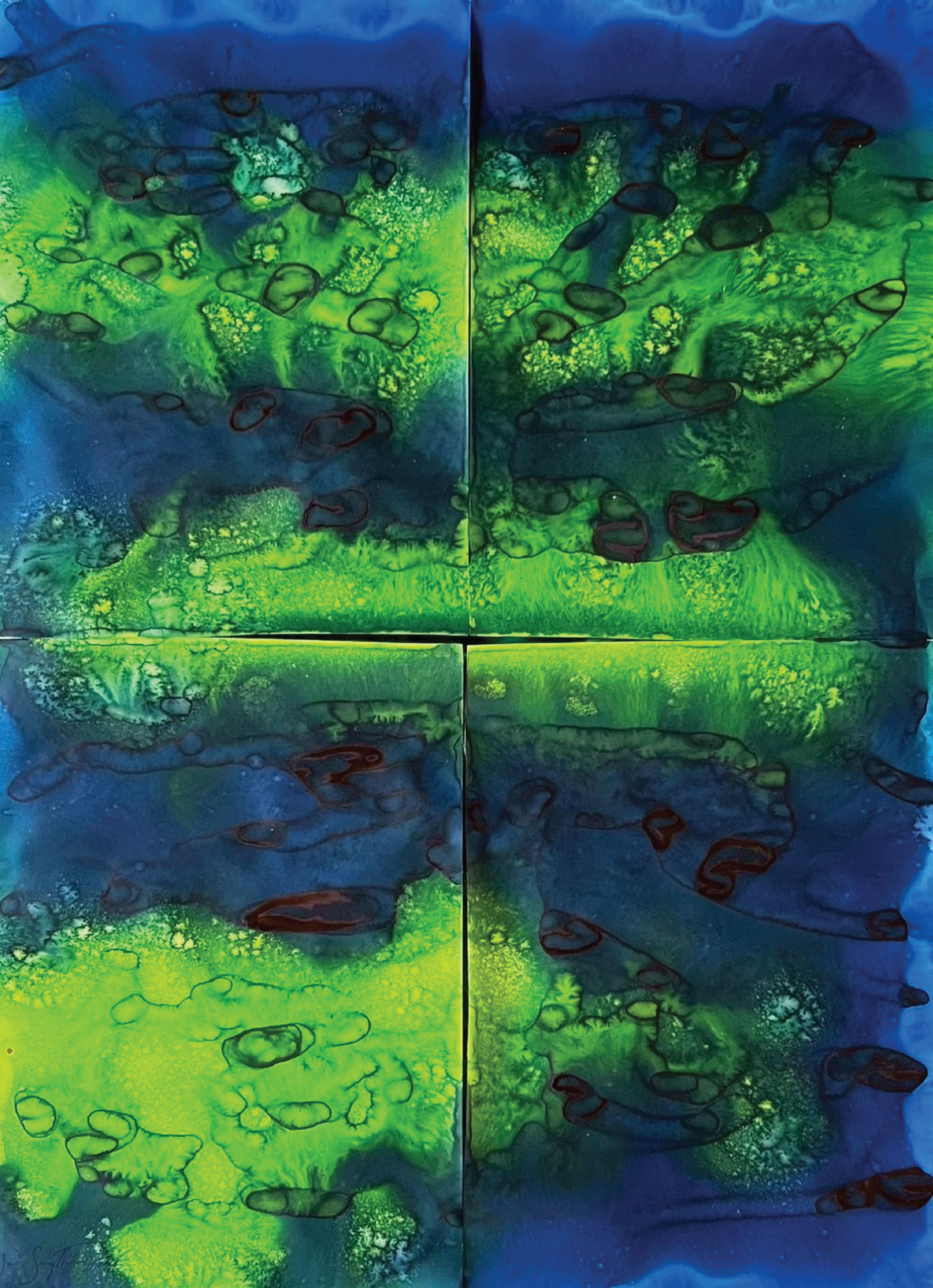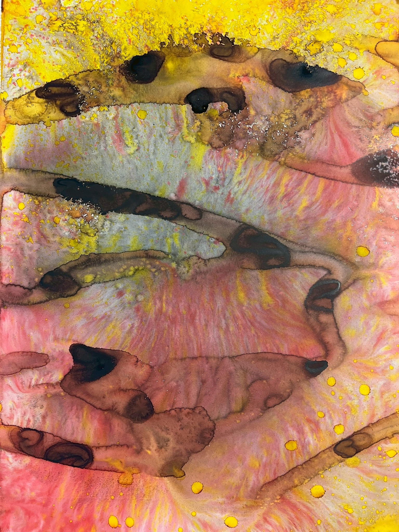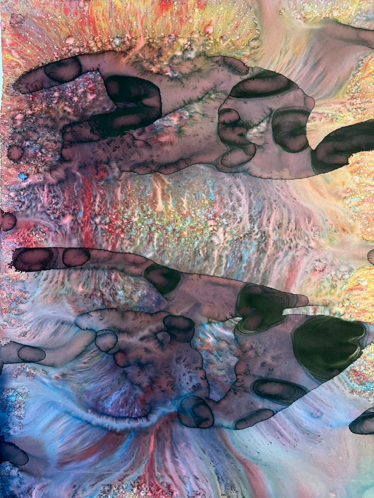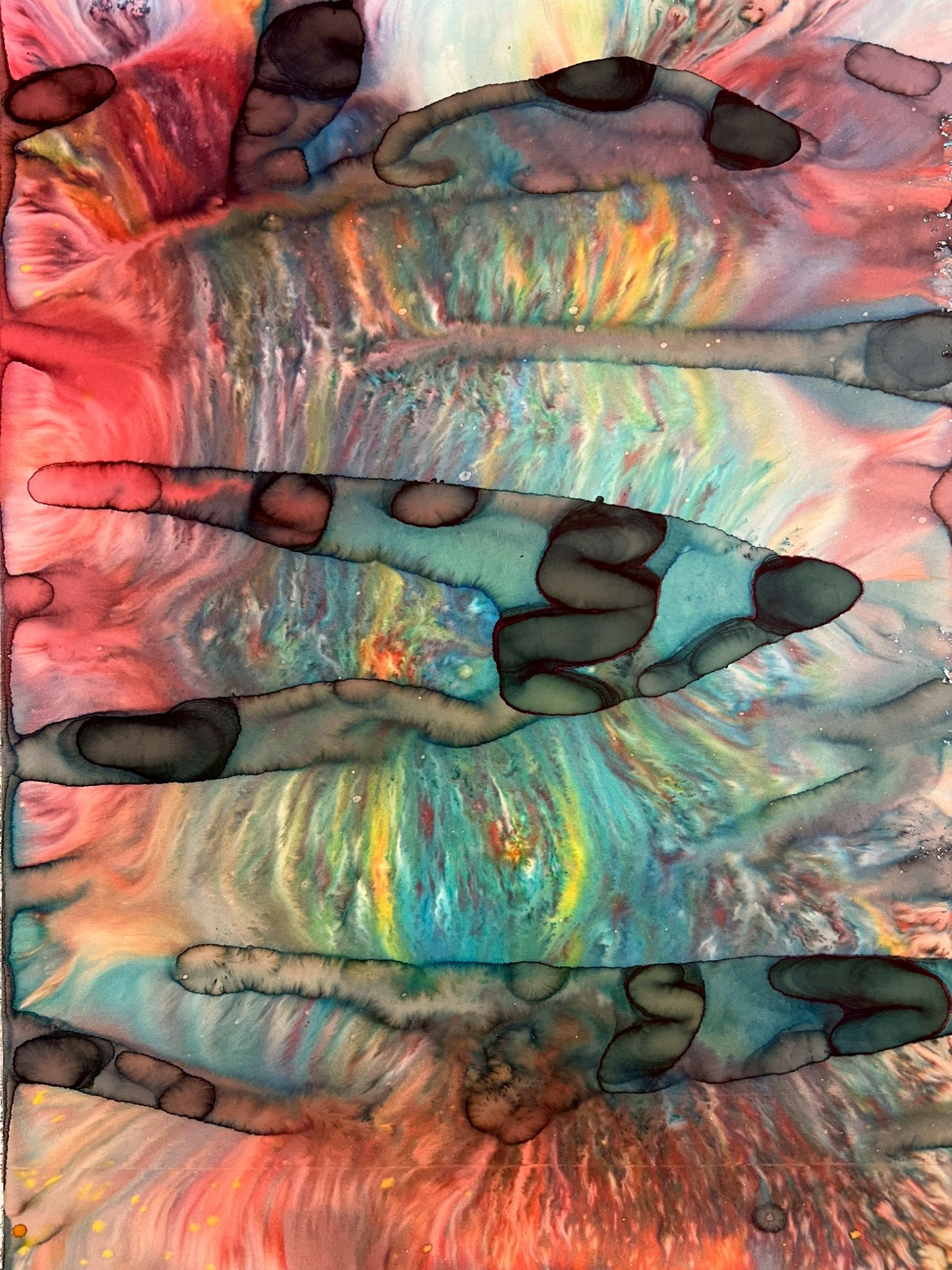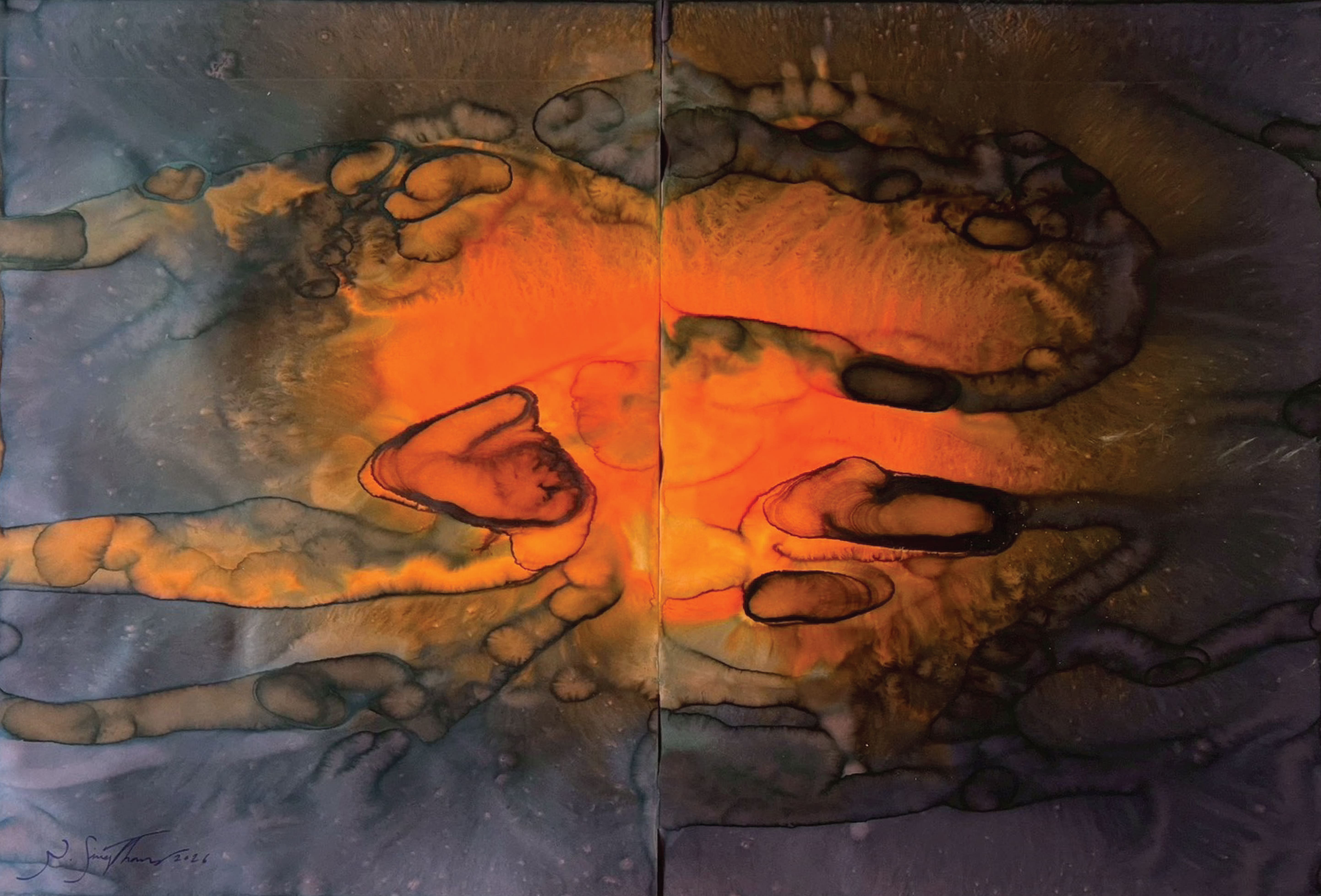 Fields of Conditions investigates the formation of reality through the interplay of forces—liquid, pigment, temperature, flow, and surface—none of which acts as a singular determinant, but rather as conditions that enable form to emerge.