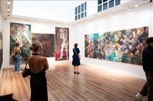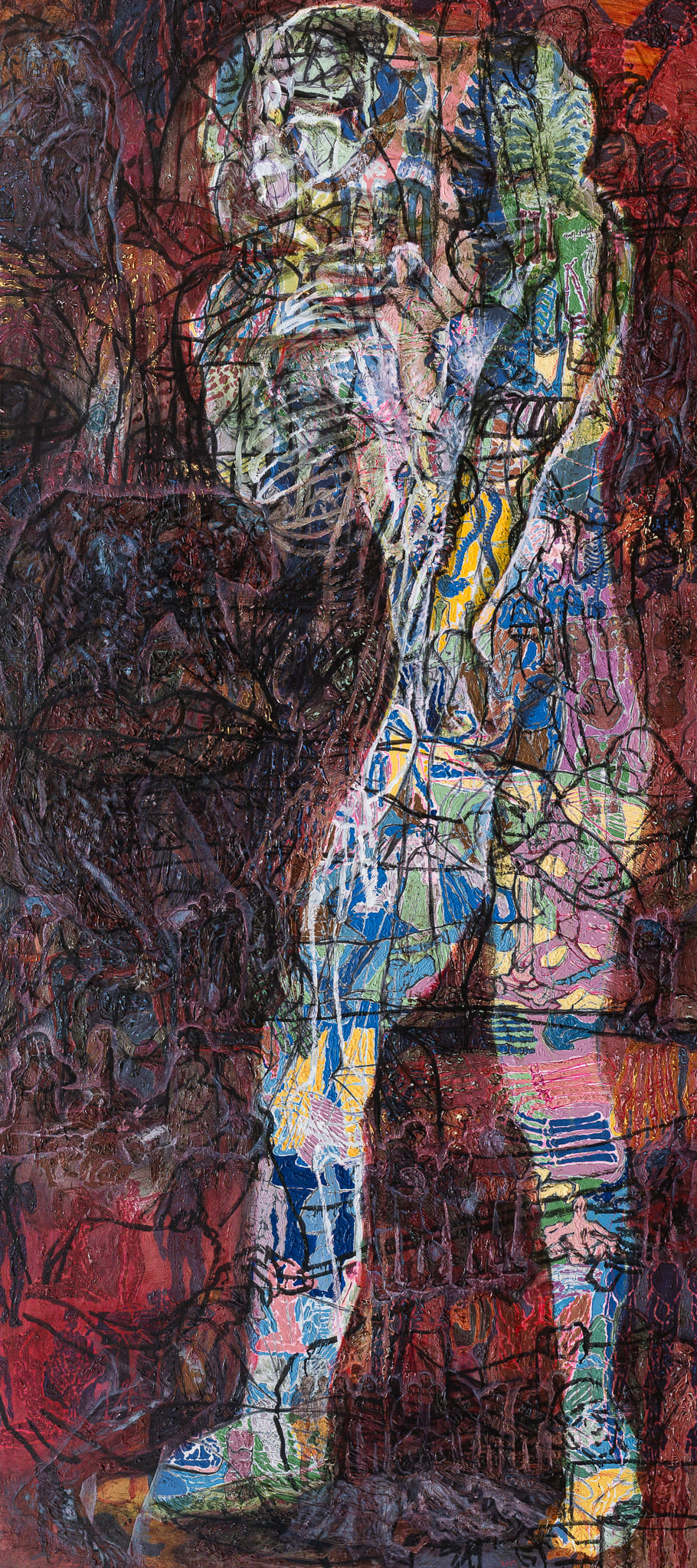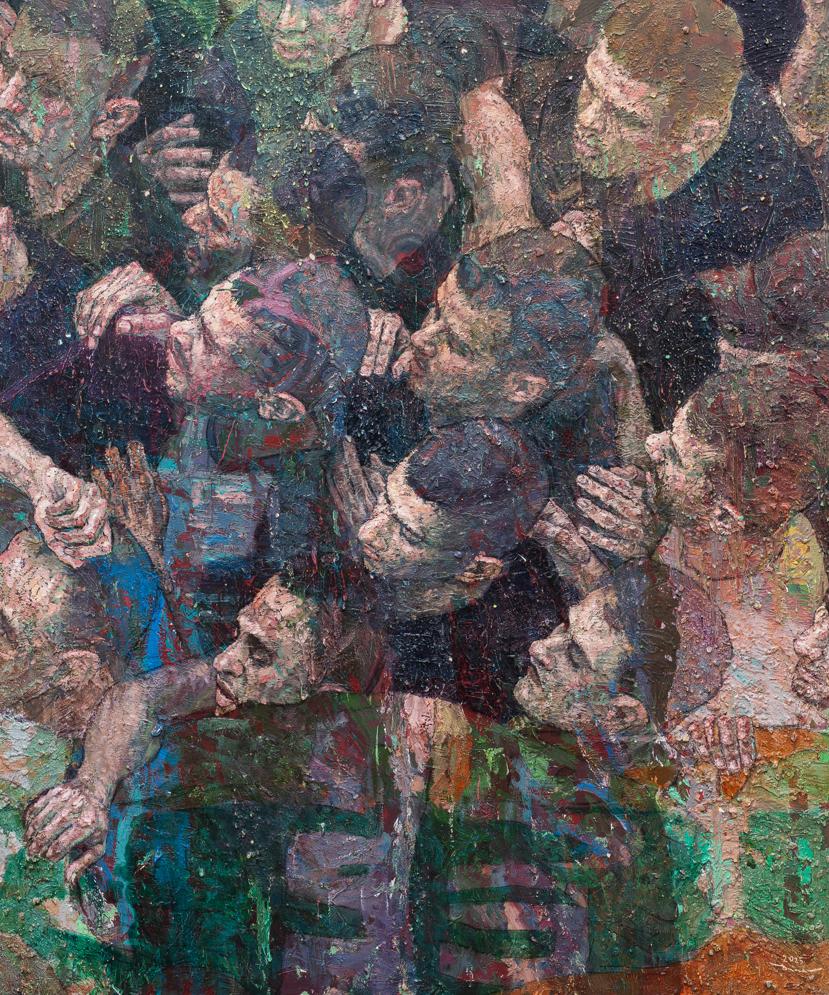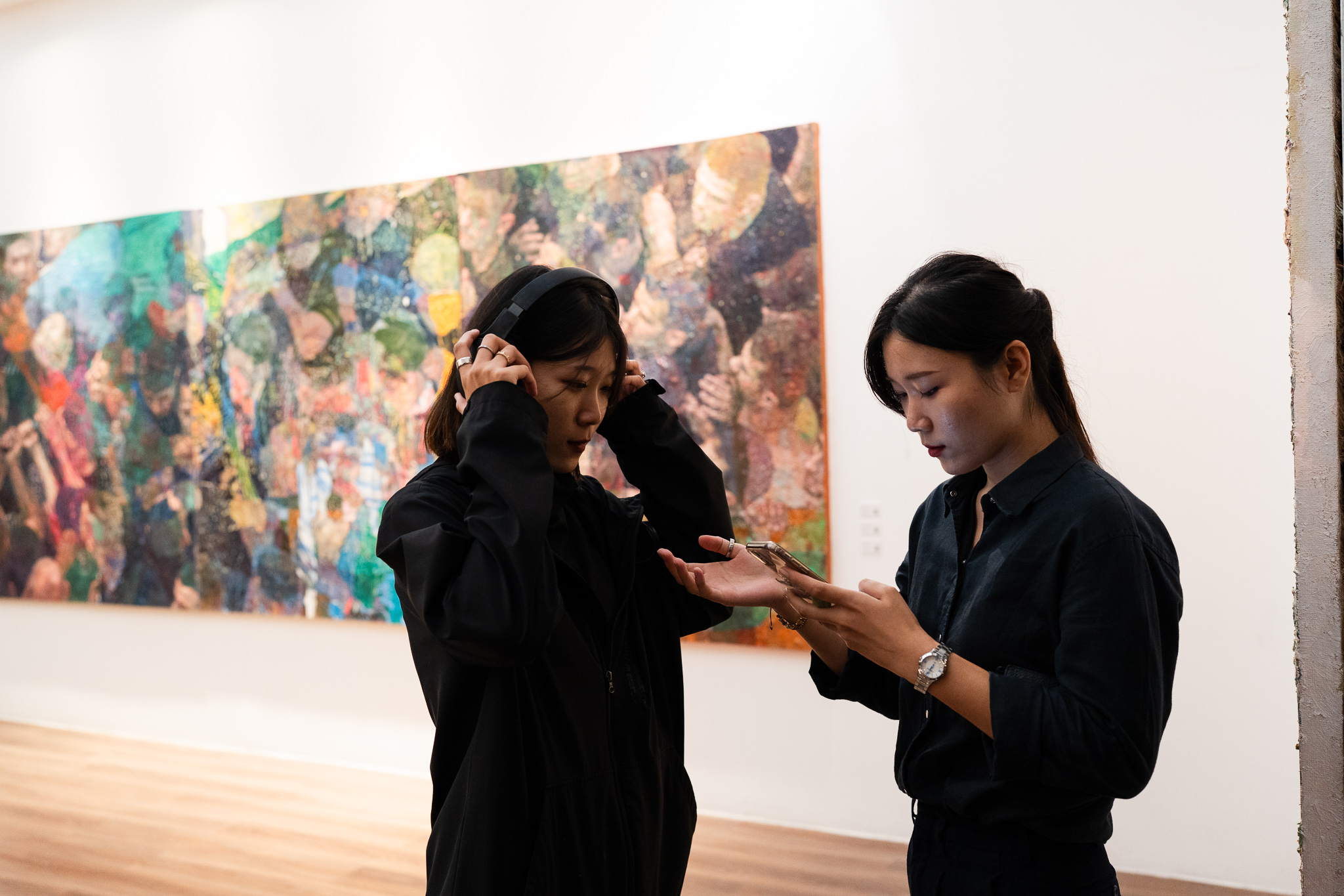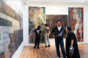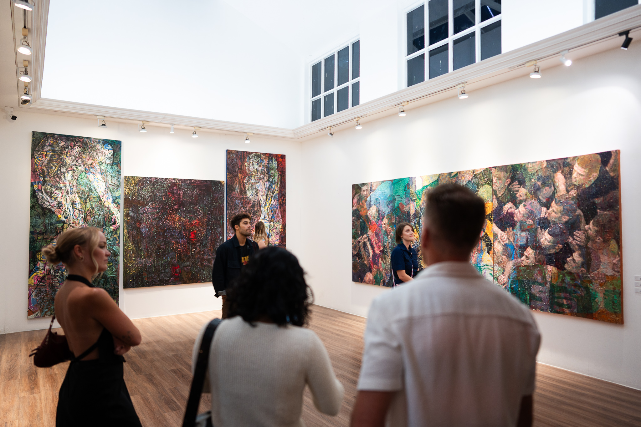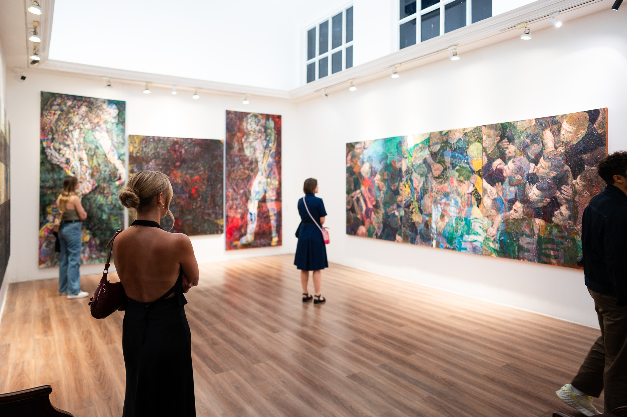 The solo exhibition "Chaos Poet Knight" by Arnont Lertpullpol, presents the hypothesis that chaos in society is a "state" caused by system imperfections, rather than a "designed structure" intended to maintain controllers' power. Arnont reinterprets symbols from Auguste Rodin's paintings The Gates of Hell and The Poet, which depict contemplation of sin and judgment in the afterlife, in the context of today, where "the gates of hell" represent a violent, war-torn, and corrupted human world. The Poet is not just a seeker of wisdom in this case, but also a "manipulator" who observes the misery of others with cold eyes. By conveying the perspective of "those affected" through a creative process that reveals the imperfections of both painting and morality, drawing from contemporary photographs and videos, and employing techniques such as scratching, sanding, thick impasto painting, and layering images, the works create surfaces that reflect the weight and density of social structures. Partially deleting and blurring images calls into doubt the truth, which is picked and altered by power. By revealing some layers of paint while concealing others, each piece contains a trace of concealment and revelation that coexists continuously. The pieces also incorporate pictures that imagine and forecast the grave implications of such buildings persisting.