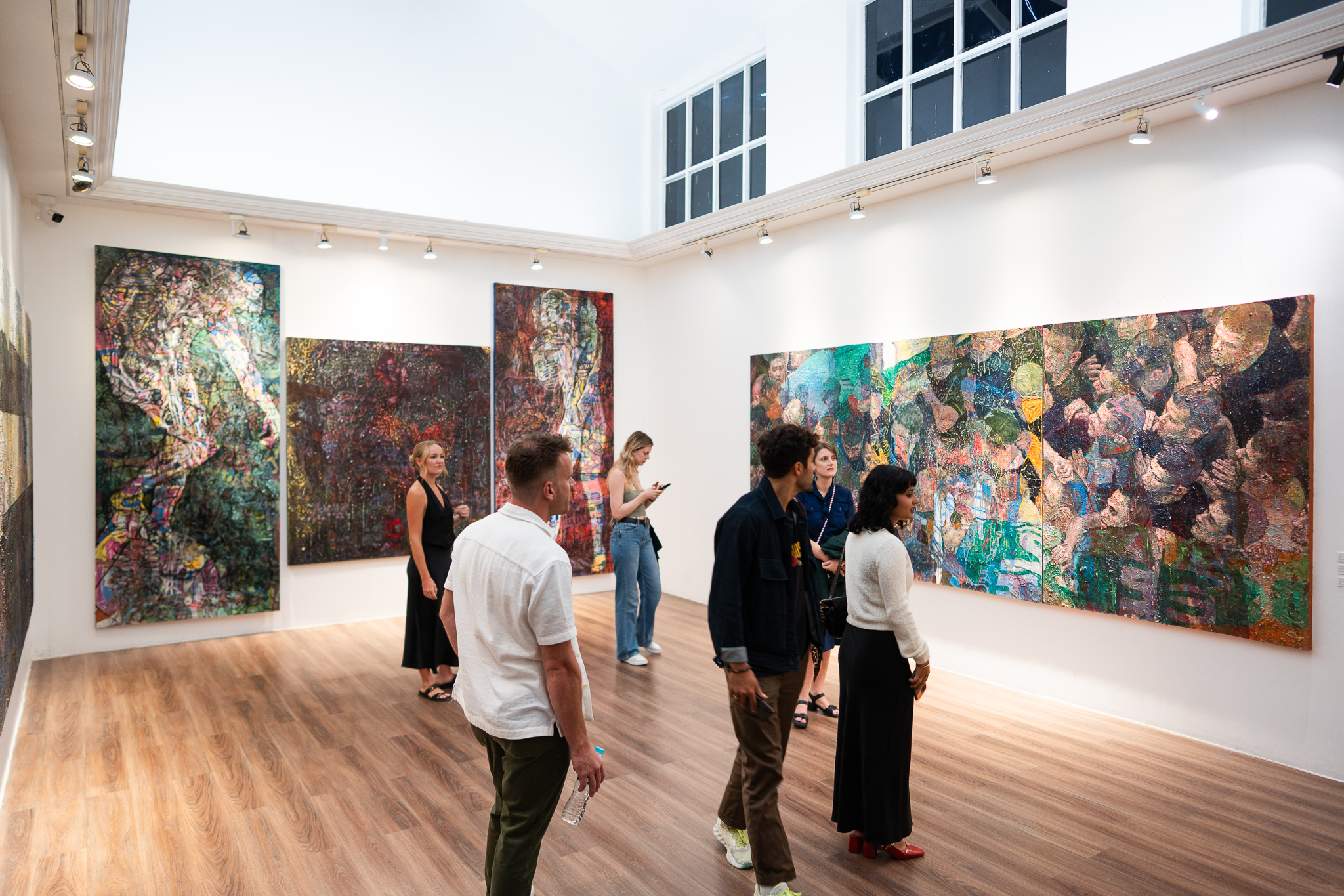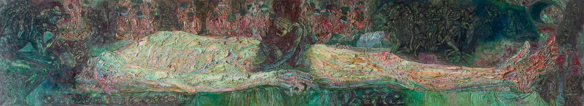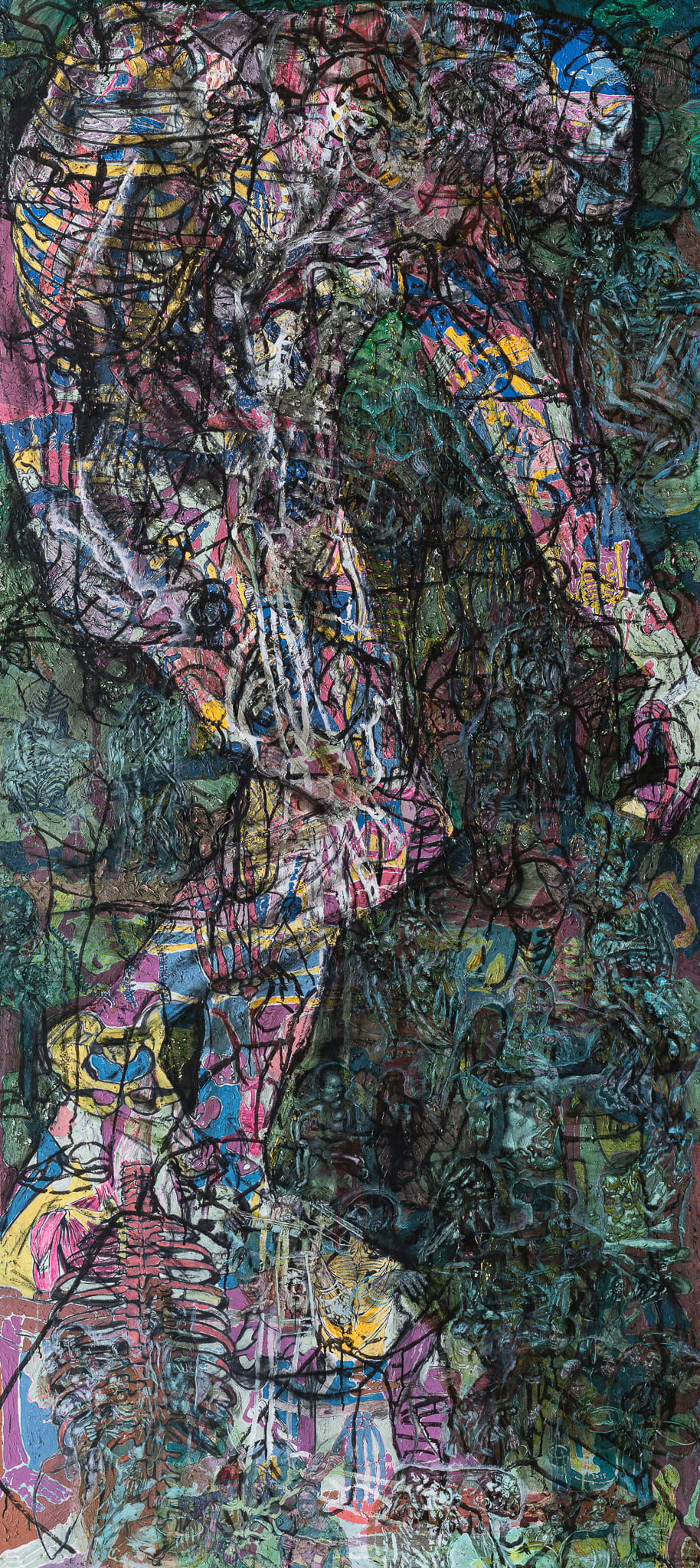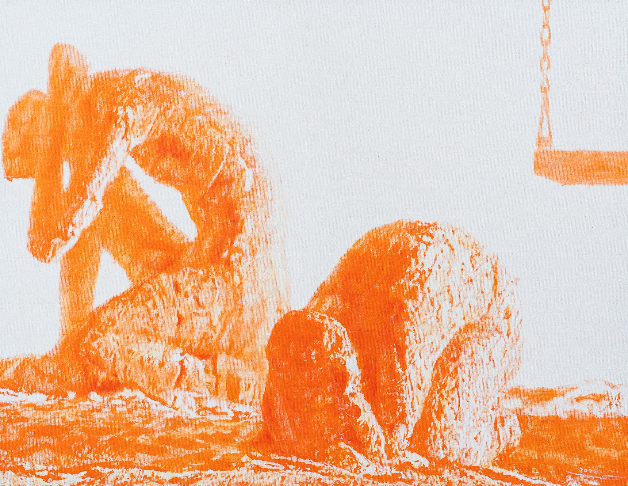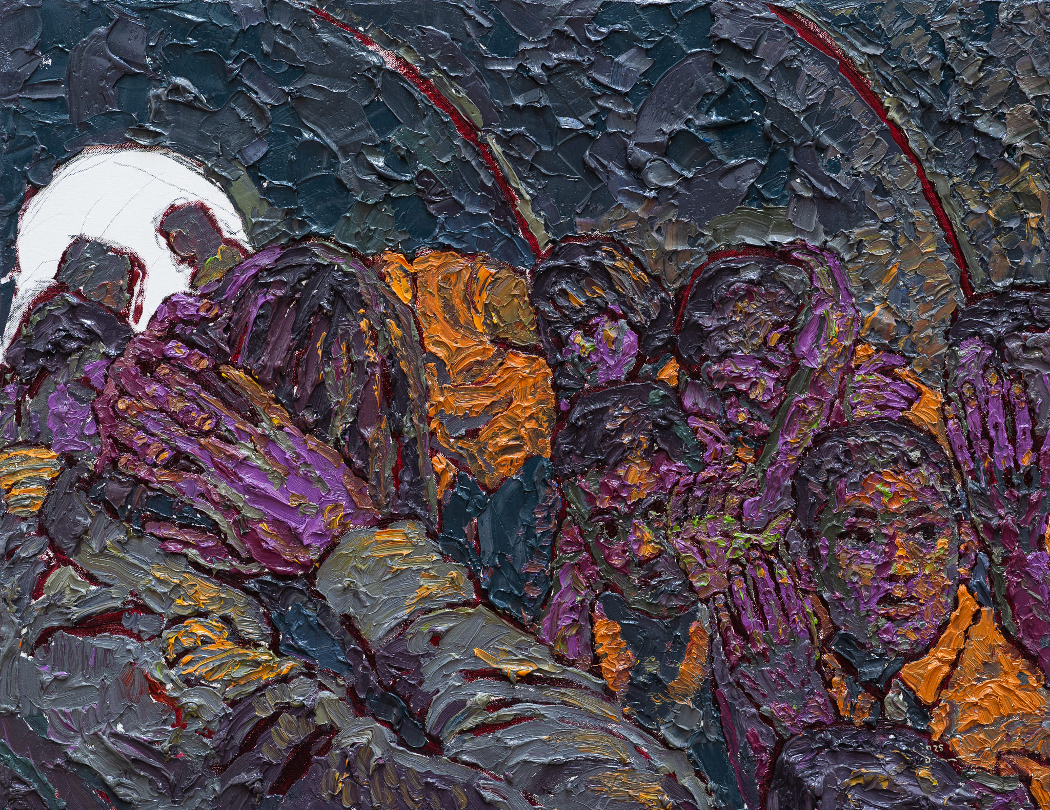 The solo exhibition "Chaos Poet Knight" by Arnont Lertpullpol, presents the hypothesis that chaos in society is a "state" caused by system imperfections, rather than a "designed structure" intended to maintain controllers' power. Arnont reinterprets symbols from Auguste Rodin's paintings The Gates of Hell and The Poet, which depict contemplation of sin and judgment in the afterlife, in the context of today, where "the gates of hell" represent a violent, war-torn, and corrupted human world. The Poet is not just a seeker of wisdom in this case, but also a "manipulator" who observes the misery of others with cold eyes. By conveying the perspective of "those affected" through a creative process that reveals the imperfections of both painting and morality, drawing from contemporary photographs and videos, and employing techniques such as scratching, sanding, thick impasto painting, and layering images, the works create surfaces that reflect the weight and density of social structures. Partially deleting and blurring images calls into doubt the truth, which is picked and altered by power. By revealing some layers of paint while concealing others, each piece contains a trace of concealment and revelation that coexists continuously. The pieces also incorporate pictures that imagine and forecast the grave implications of such buildings persisting.