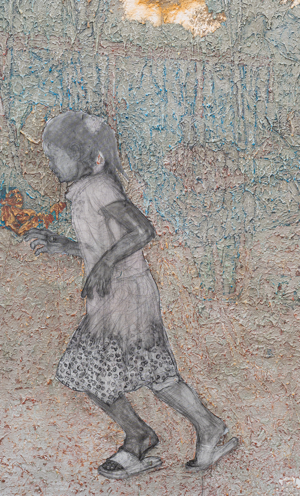 การวาด การขูด การขัด การทาสีหนา(impasto) เเละการซ้อนทับภาพหลายชั้น เพื่อสร้างพื้นผิวที่สะท้อนถึงความหนักและความหนาแน่นของโครงสร้างสังคม การลบและเบลอบางส่วนของภาพ เป็นการตั้งคำถามต่อความจริงที่ถูกเลือกและตัดต่อโดยอำนาจ การเปิดเผยบางชั้นของสีในขณะที่ปกปิดอีกชั้นหนึ่ง ทำให้ภาพแต่ละชิ้นกลายเป็นร่องรอยของการซ่อนและการเปิดเผยที่อยู่ร่วมกันอย่างต่อเนื่อง รวมถึงยังมีภาพการจินตนาการและคาดคะเนถึงผลลัพธ์ร้ายแรงที่จะเกิดขึ้นหากโครงสร้างเช่นนี้ยังดำรงอยู่ต่อไป