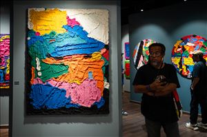 สีอุตสาหกรรมที่ให้สีสดและเด่นชัด ตลอดจนสร้างความหมายจากความเป็นปริมาตรของสี ด้วยการใช้พื้นผิวนูนหนาและ