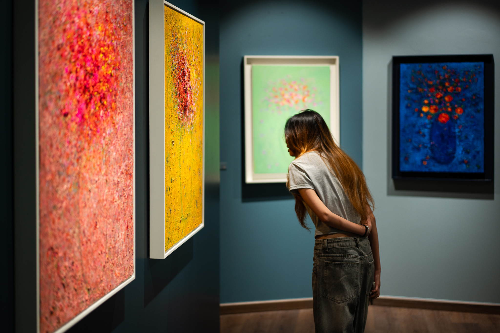ดอกไม้เปรียบเสมือนสัญลักษณ์ของหัวใจที่เปล่งประกาย มีชีวิตชีวา และอยู่กับปัจจุบันขณะ ภาพวาดแต่ละภาพสะท้อนความสมดุลอันละเอียดอ่อน โดดเด่นและเข้มข้นในเชิงลึก ทว่าอ่อนโยนและอ่อนไหวในความรู้สึก