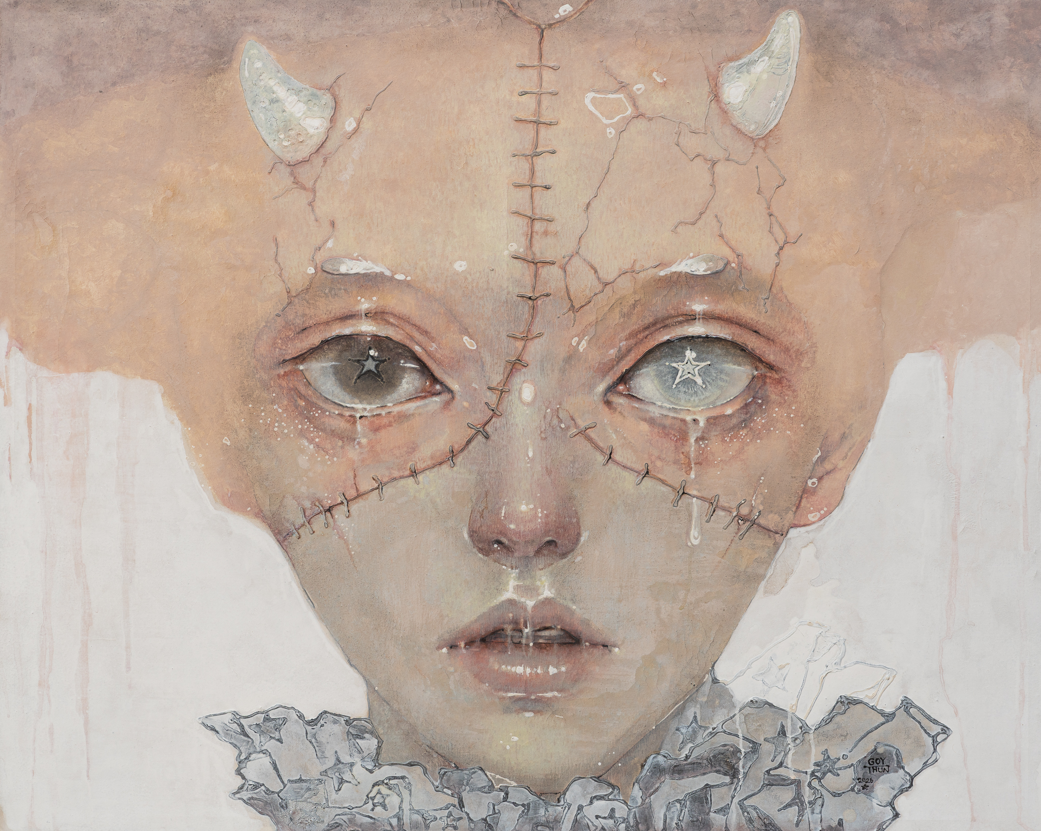 Powder color and acrylic on canvas,