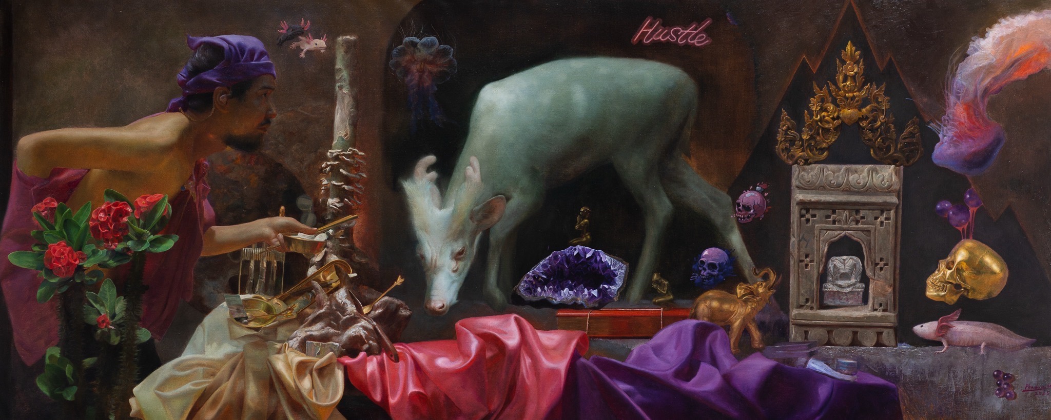 Phadungsak Kheawpong, the artist from Poh-Chang Academy of Arts, Rajamangala University of Technology Rattanakosin, has high aesthetic level art works which full of beauty, unique and mysterious stories. Therefore, he got awarded from the 19th Panasonic Contemporary painting competition, and represented his works in The 30th exhibition of contemporary art by young artist at Art centre Silpakorn. Additionally, he attended exhibiting his works in exhibition groups with “Love is” and “The spirit of six” under Number1Gallery and exhibited his works in Art fair Philippines, 2020.