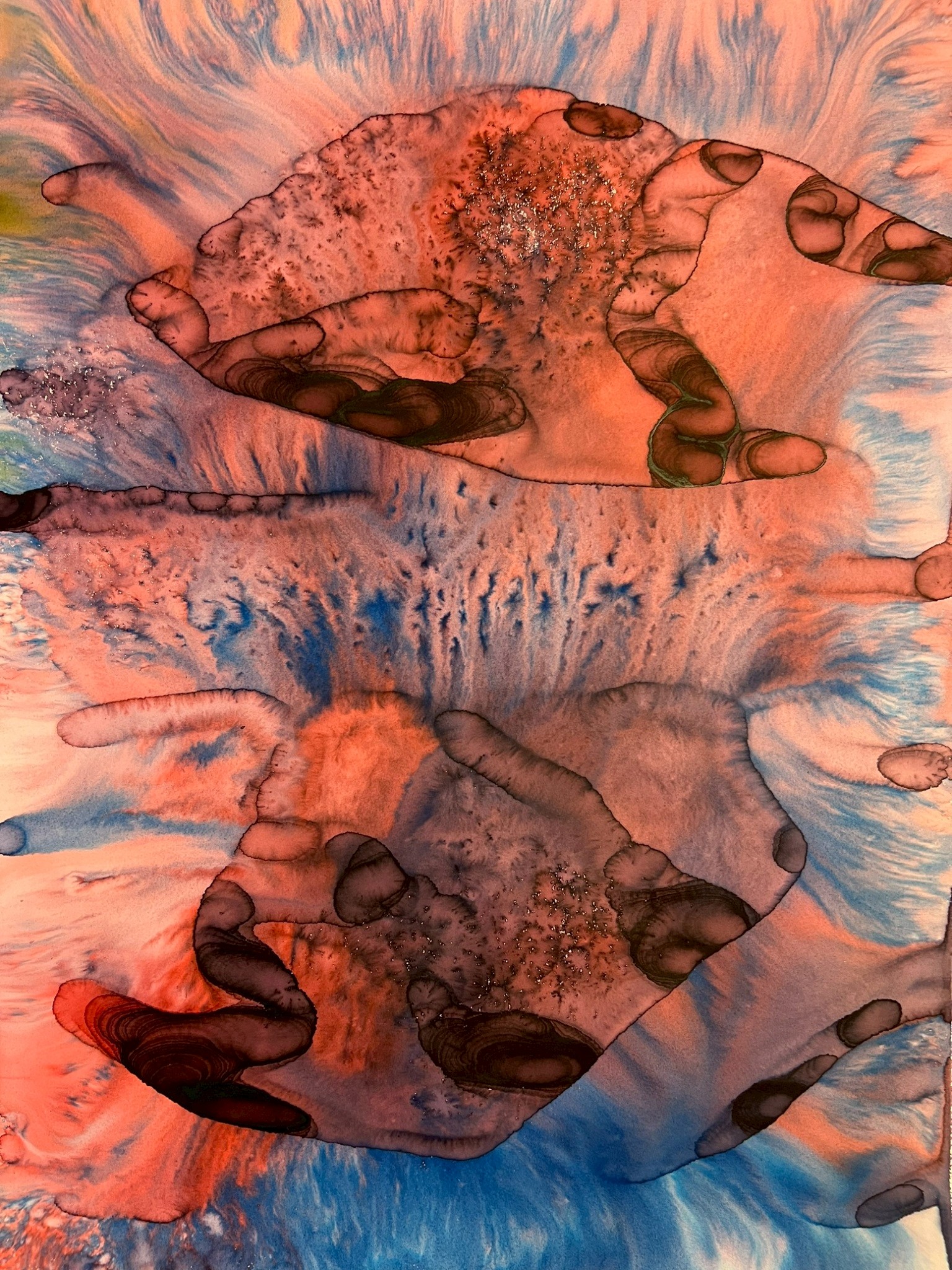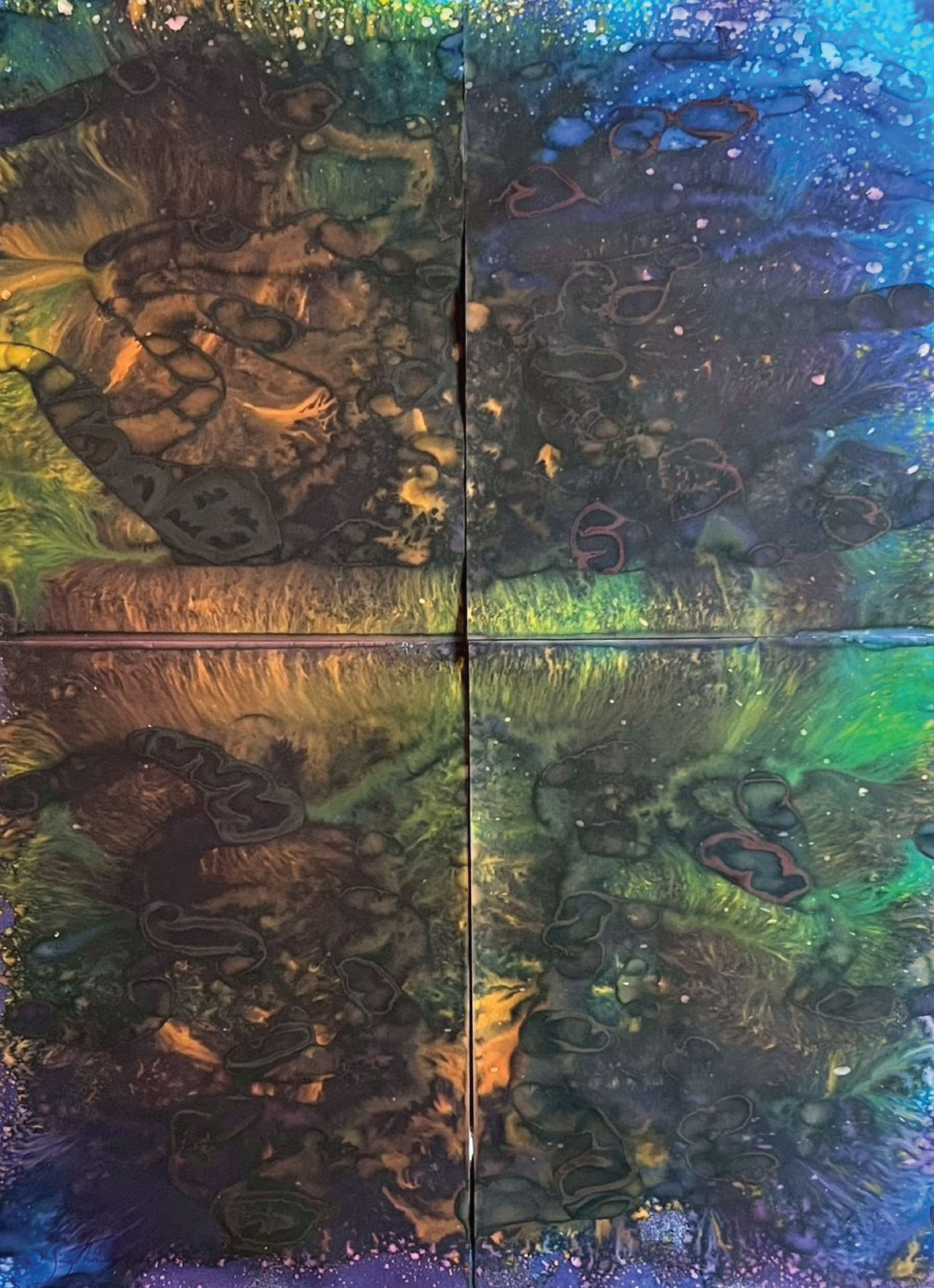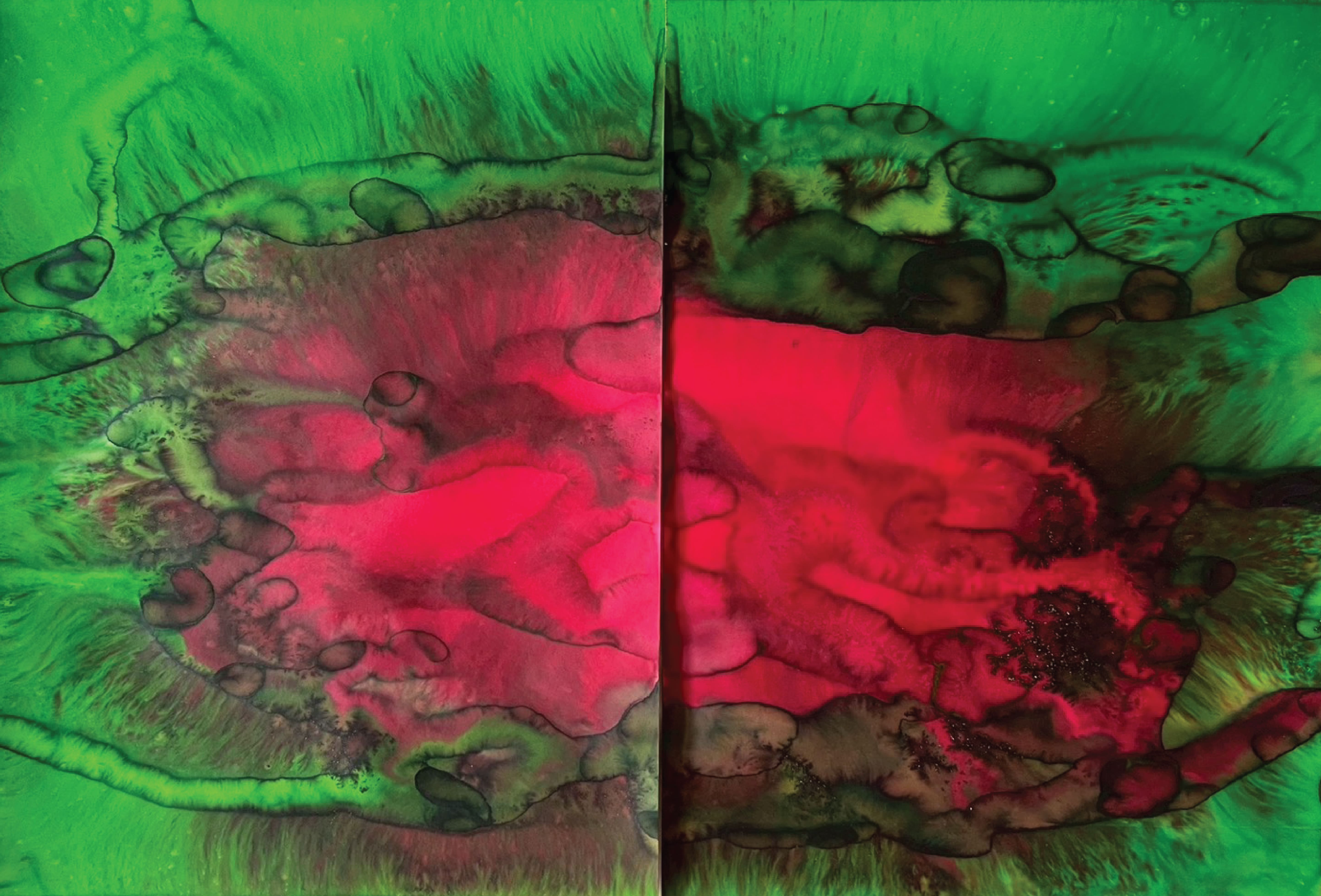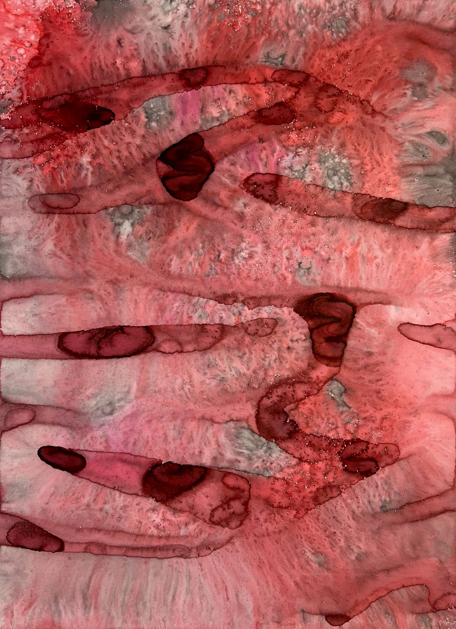 Fields of Conditions investigates the formation of reality through the interplay of forces—liquid, pigment, temperature, flow, and surface—none of which acts as a singular determinant, but rather as conditions that enable form to emerge.