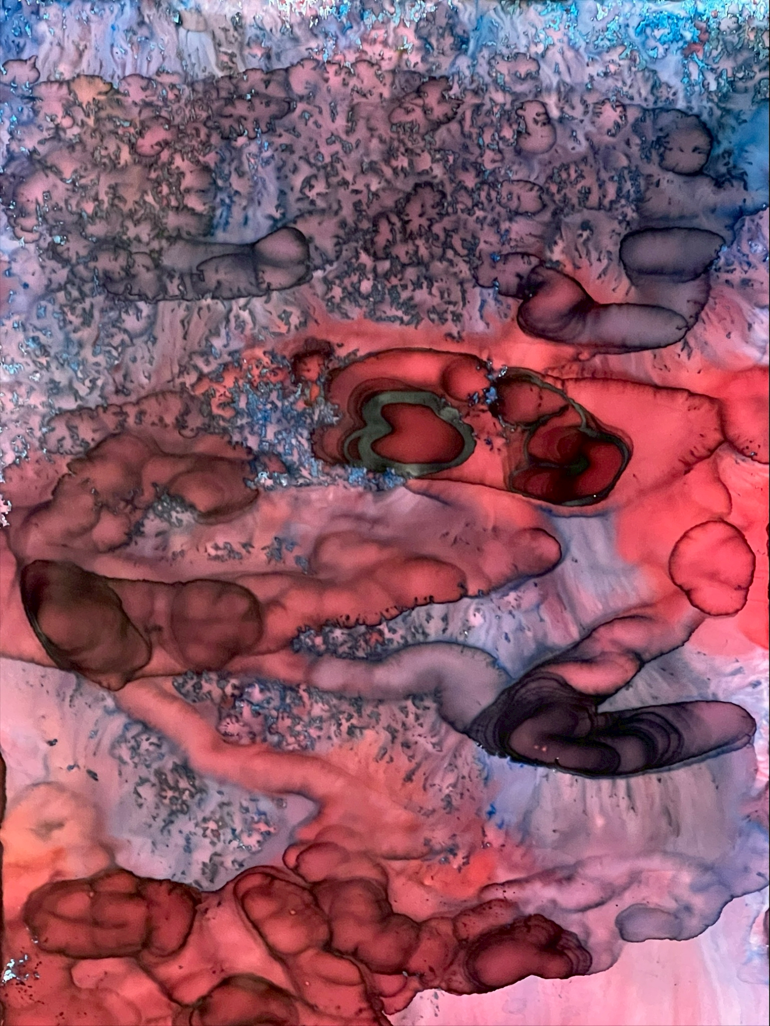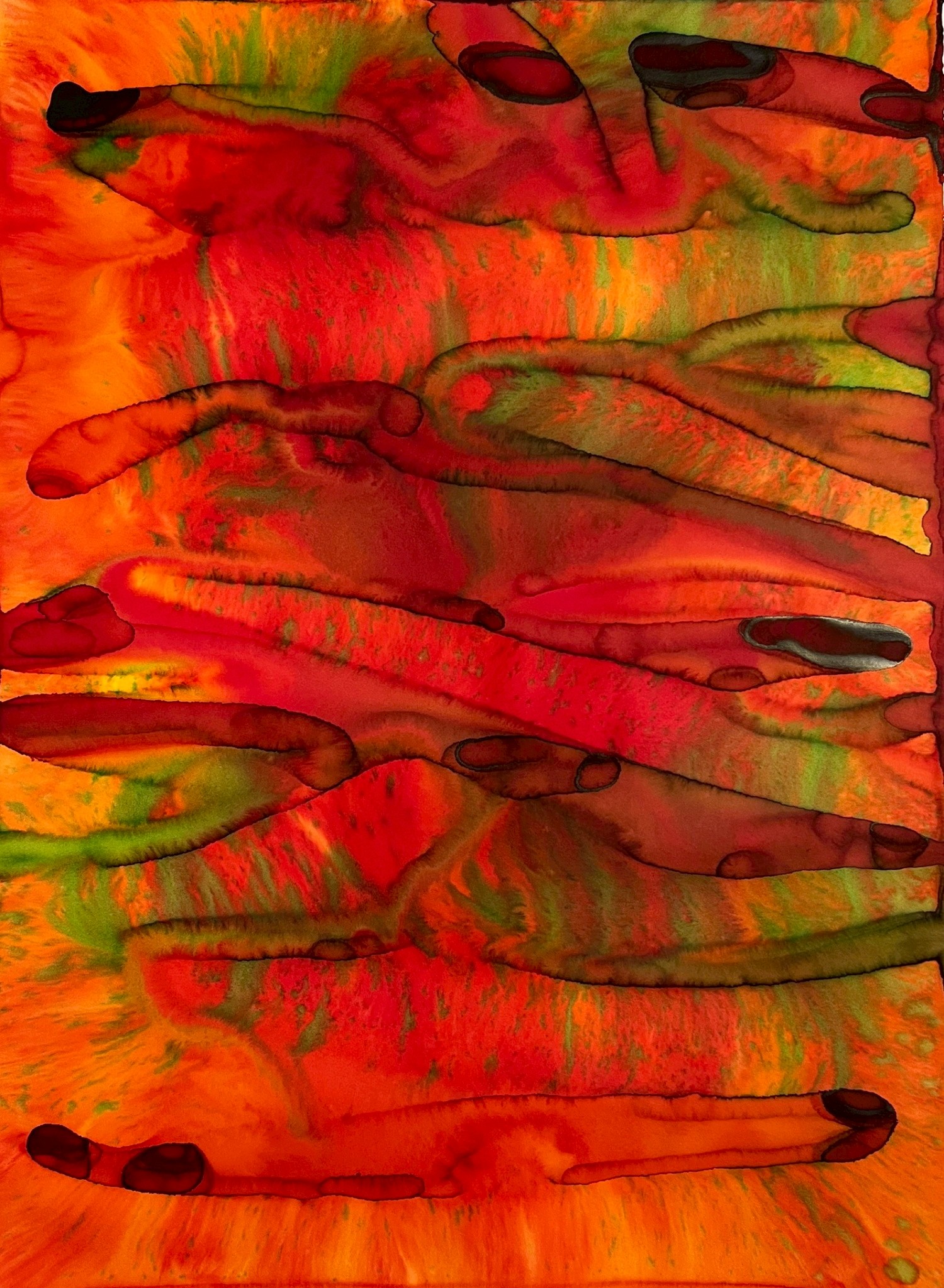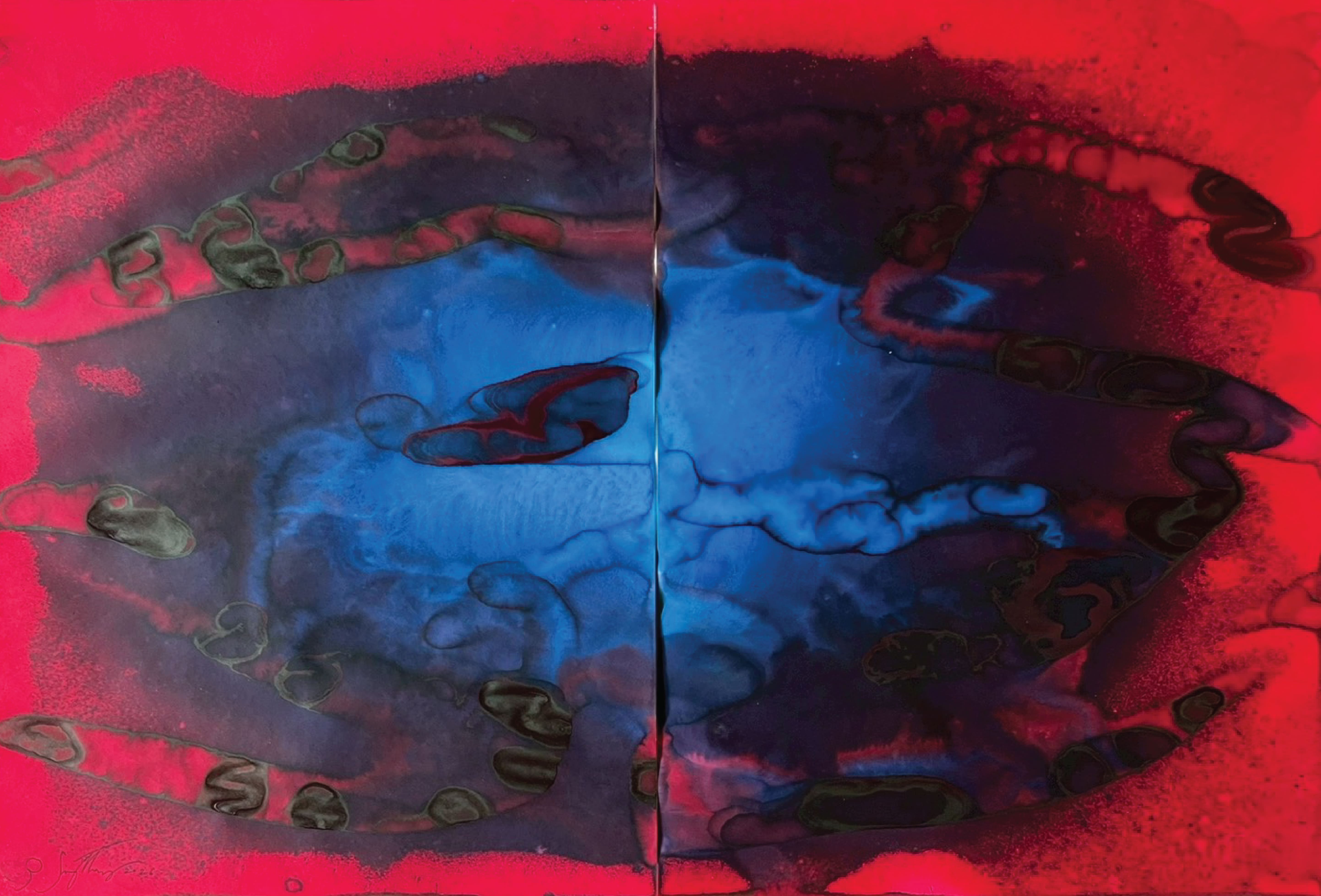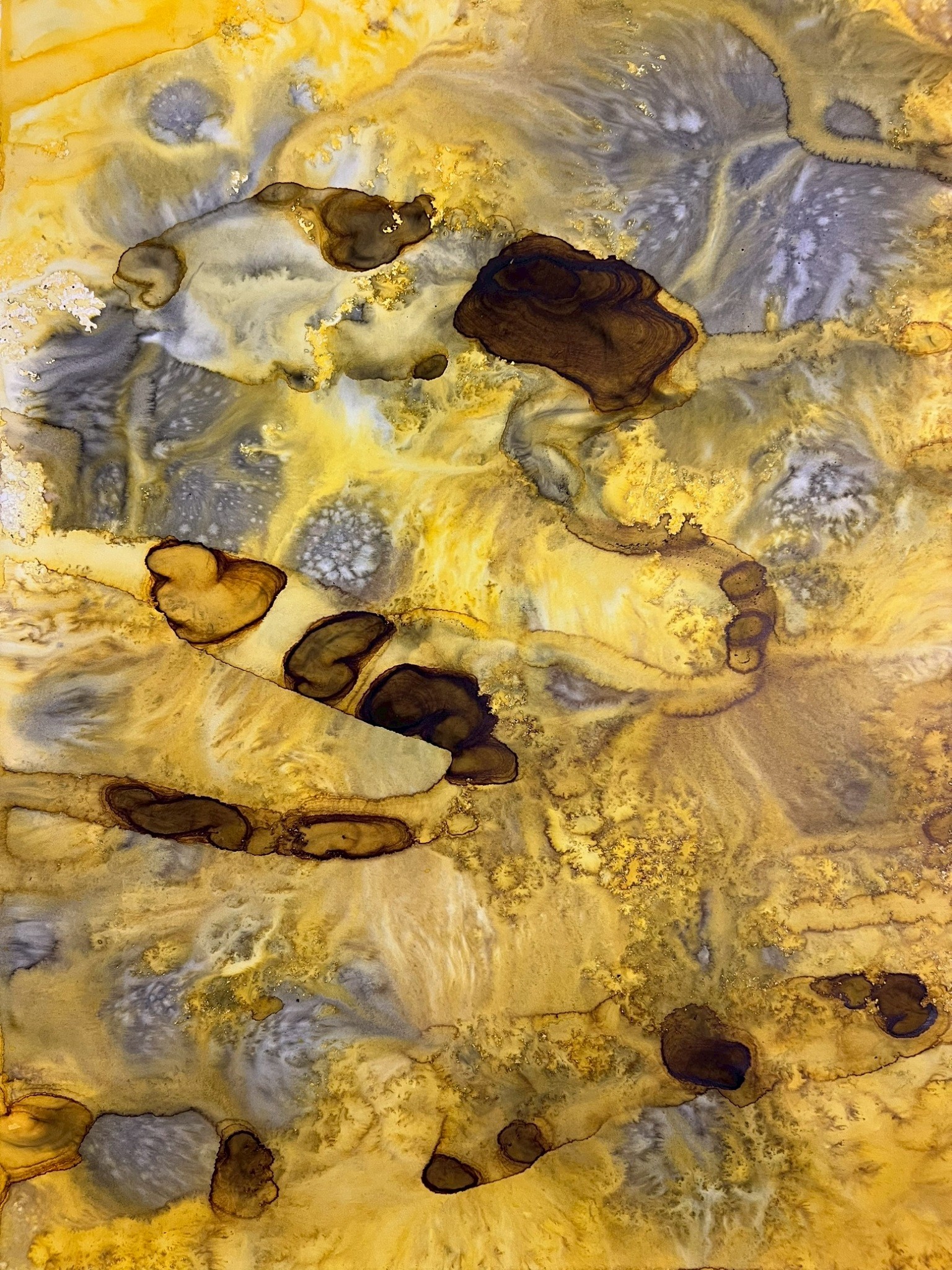 Fields of Conditions investigates the formation of reality through the interplay of forces—liquid, pigment, temperature, flow, and surface—none of which acts as a singular determinant, but rather as conditions that enable form to emerge.
