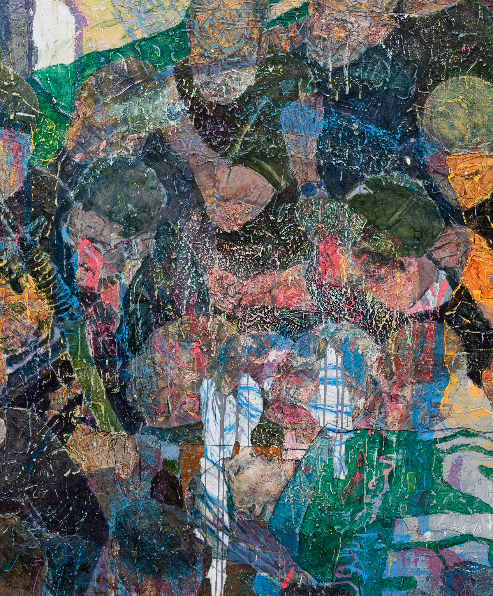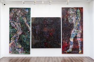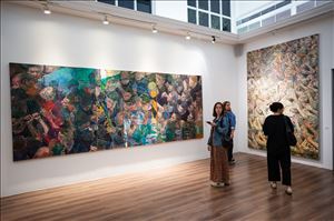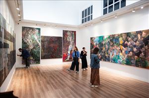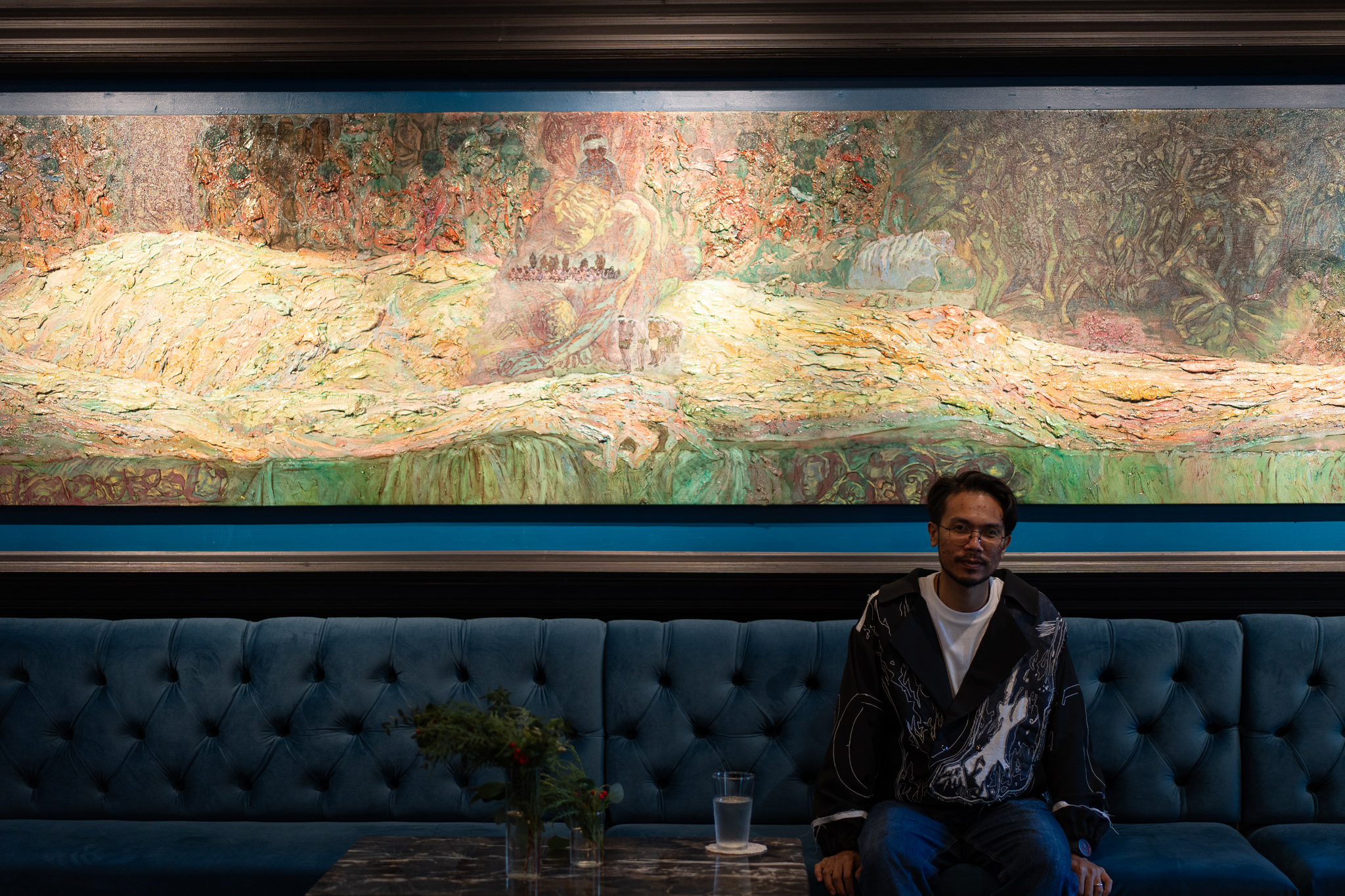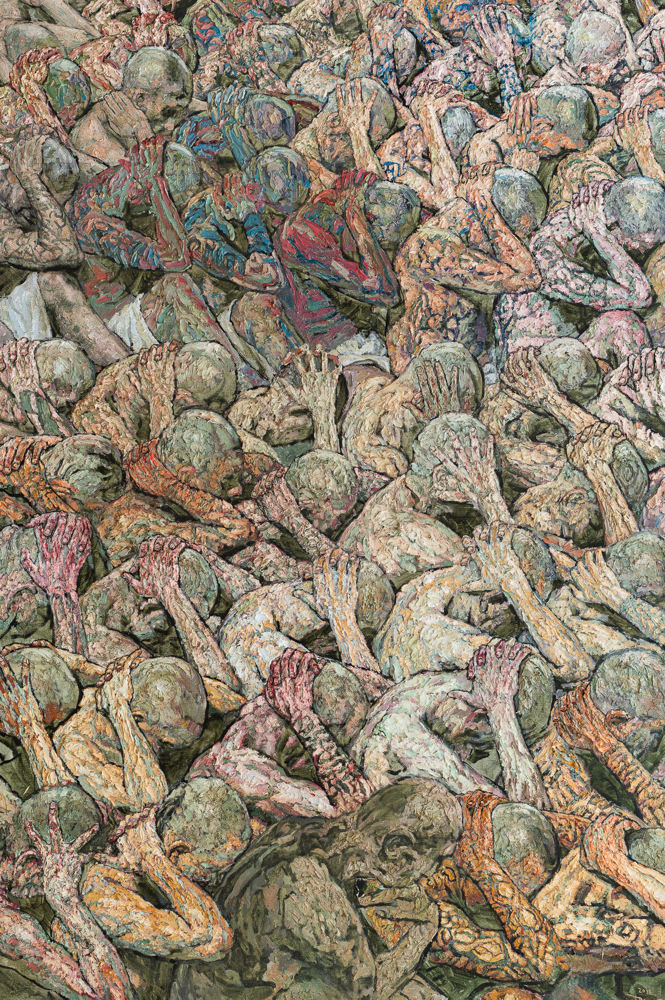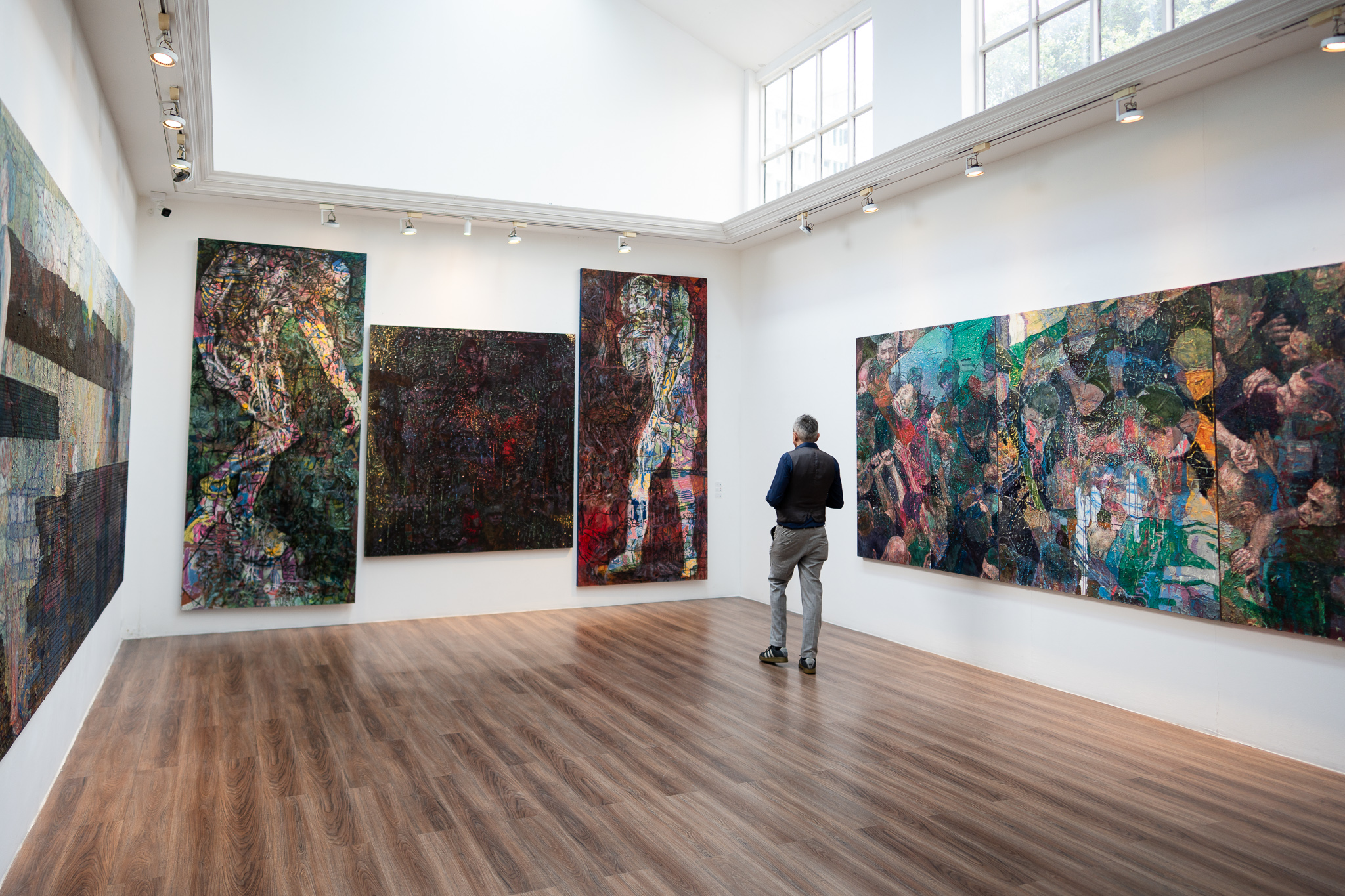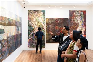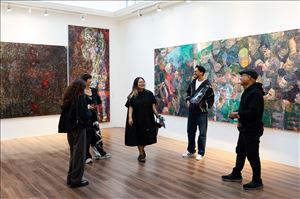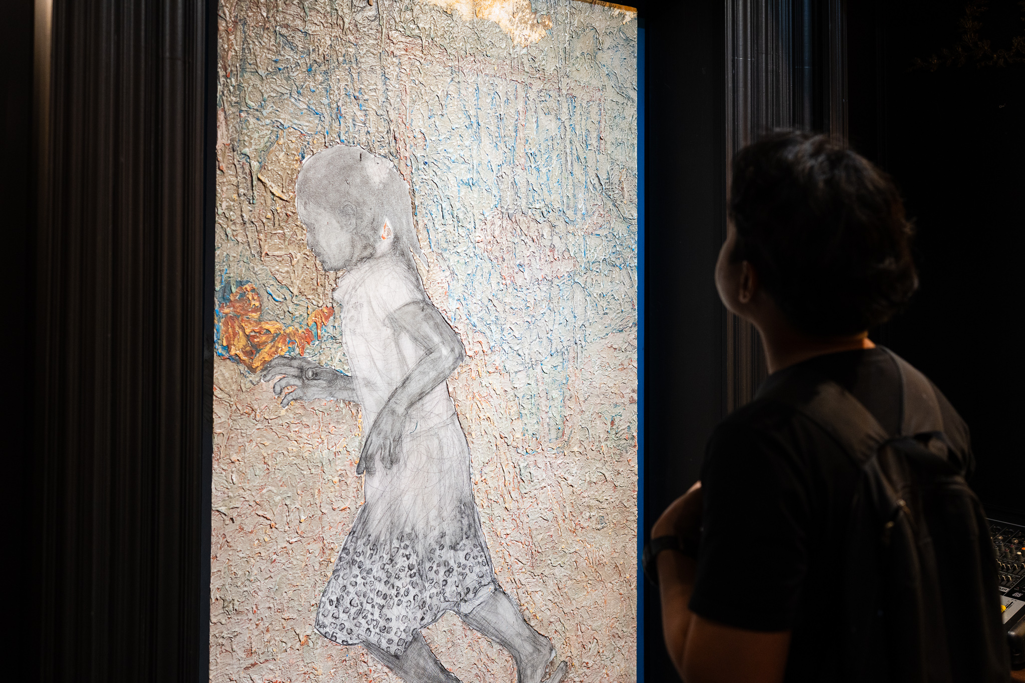 The solo exhibition "Chaos Poet Knight" by Arnont Lertpullpol, presents the hypothesis that chaos in society is a "state" caused by system imperfections, rather than a "designed structure" intended to maintain controllers' power. Arnont reinterprets symbols from Auguste Rodin's paintings The Gates of Hell and The Poet, which depict contemplation of sin and judgment in the afterlife, in the context of today, where "the gates of hell" represent a violent, war-torn, and corrupted human world. The Poet is not just a seeker of wisdom in this case, but also a "manipulator" who observes the misery of others with cold eyes. By conveying the perspective of "those affected" through a creative process that reveals the imperfections of both painting and morality, drawing from contemporary photographs and videos, and employing techniques such as scratching, sanding, thick impasto painting, and layering images, the works create surfaces that reflect the weight and density of social structures. Partially deleting and blurring images calls into doubt the truth, which is picked and altered by power. By revealing some layers of paint while concealing others, each piece contains a trace of concealment and revelation that coexists continuously. The pieces also incorporate pictures that imagine and forecast the grave implications of such buildings persisting.