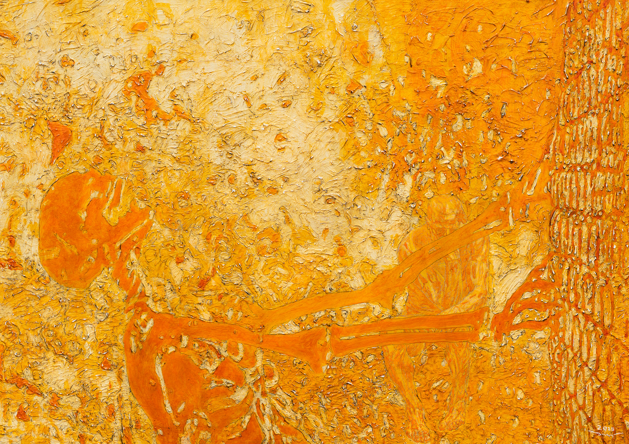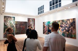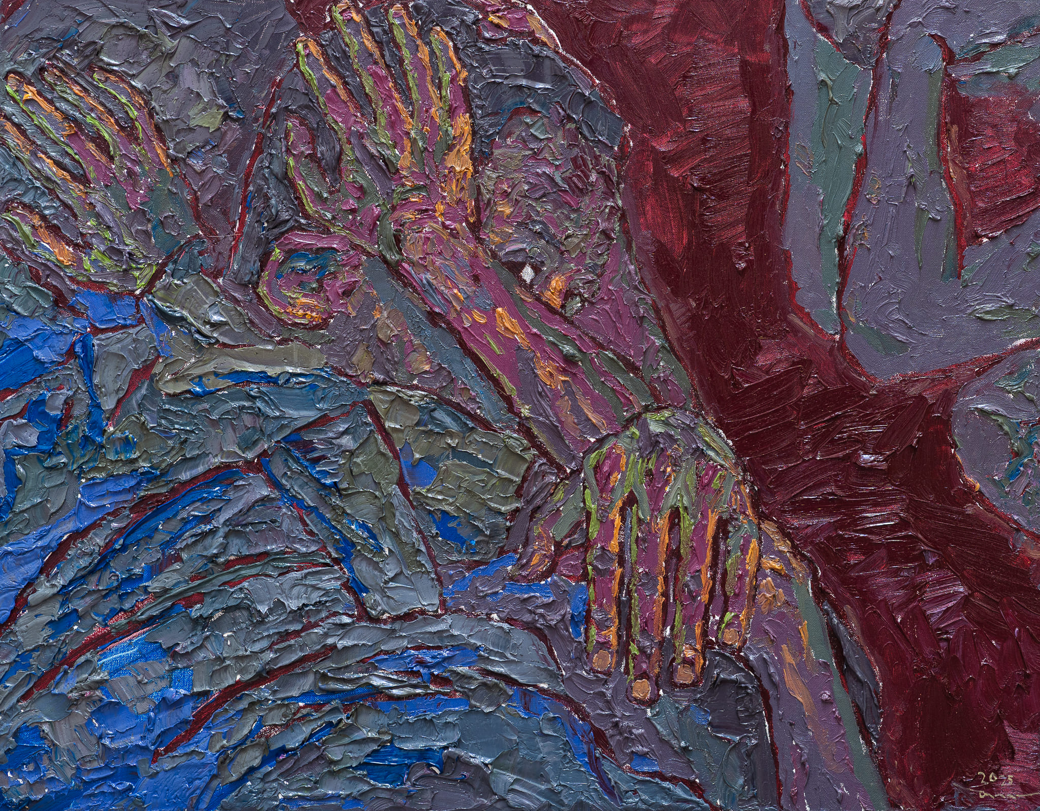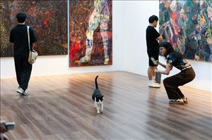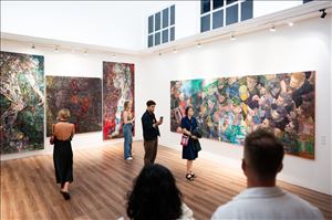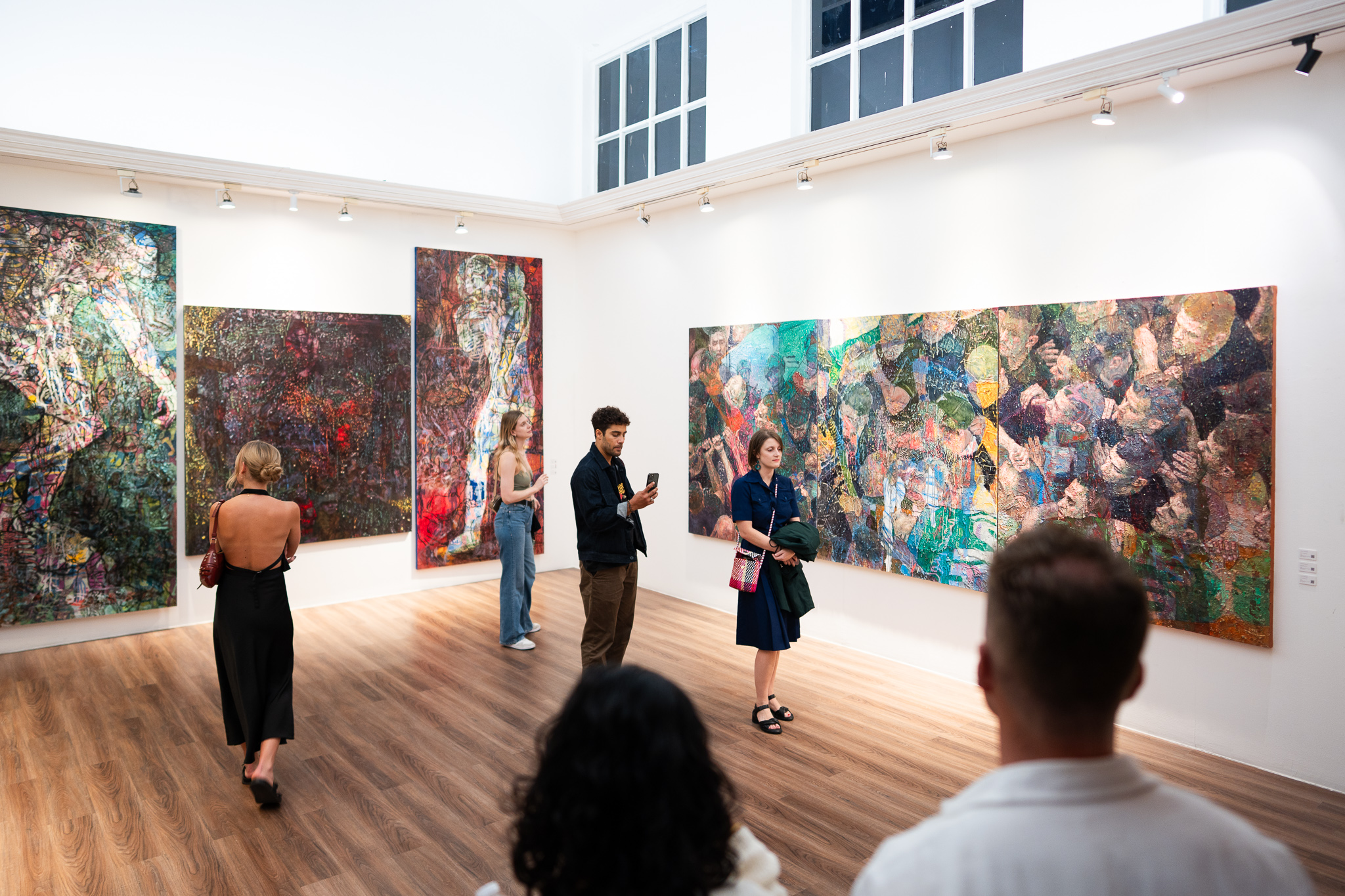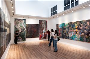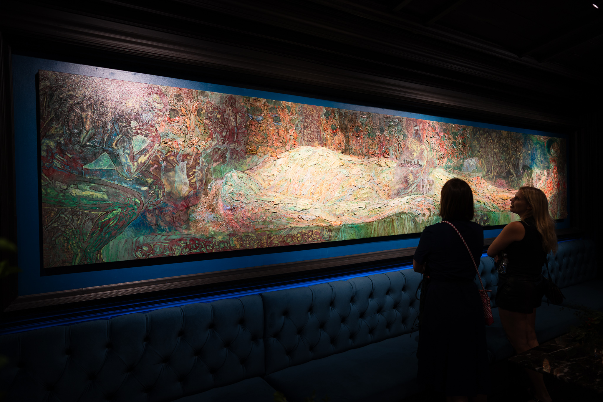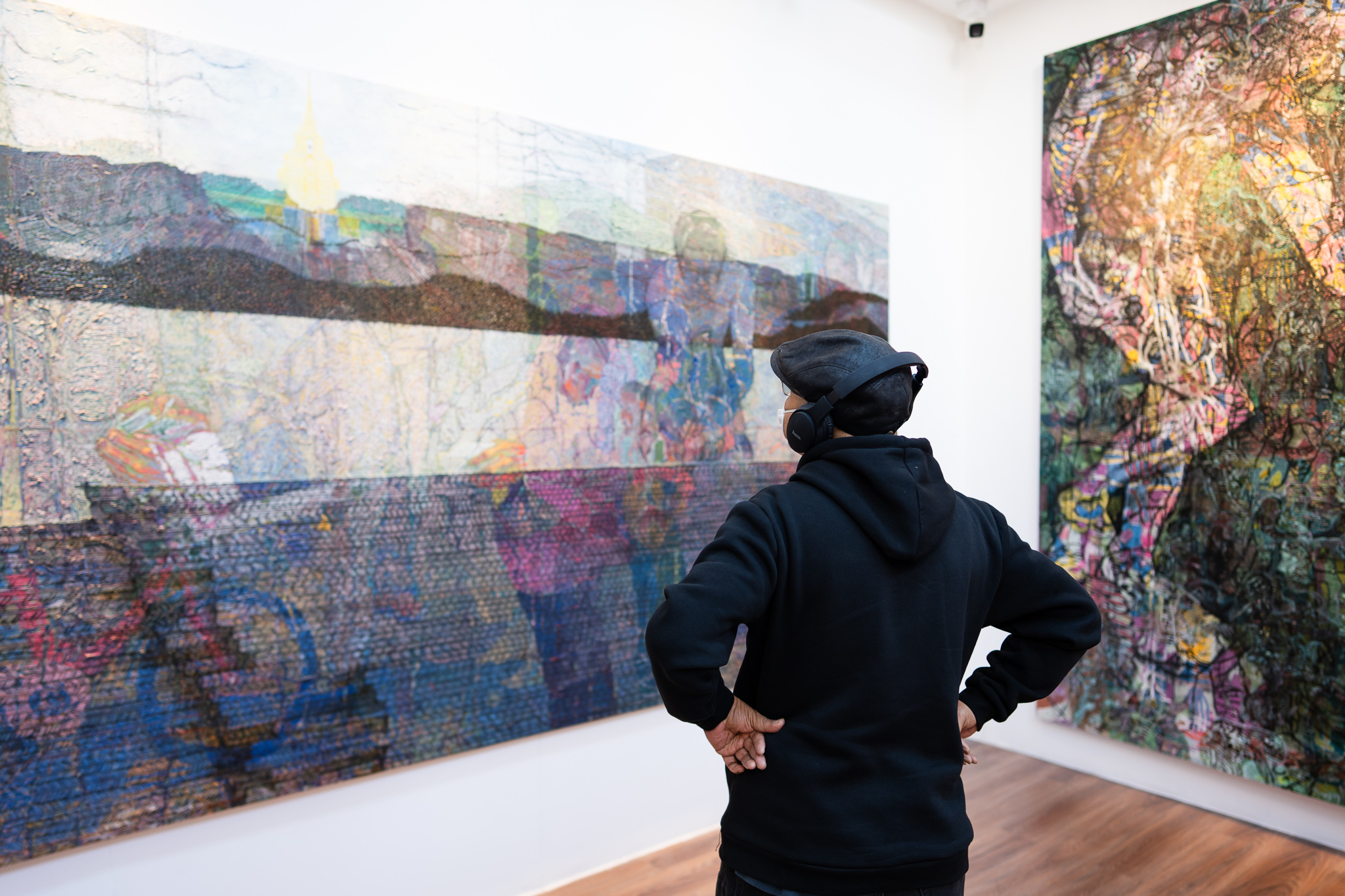 The solo exhibition "Chaos Poet Knight" by Arnont Lertpullpol, presents the hypothesis that chaos in society is a "state" caused by system imperfections, rather than a "designed structure" intended to maintain controllers' power. Arnont reinterprets symbols from Auguste Rodin's paintings The Gates of Hell and The Poet, which depict contemplation of sin and judgment in the afterlife, in the context of today, where "the gates of hell" represent a violent, war-torn, and corrupted human world. The Poet is not just a seeker of wisdom in this case, but also a "manipulator" who observes the misery of others with cold eyes. By conveying the perspective of "those affected" through a creative process that reveals the imperfections of both painting and morality, drawing from contemporary photographs and videos, and employing techniques such as scratching, sanding, thick impasto painting, and layering images, the works create surfaces that reflect the weight and density of social structures. Partially deleting and blurring images calls into doubt the truth, which is picked and altered by power. By revealing some layers of paint while concealing others, each piece contains a trace of concealment and revelation that coexists continuously. The pieces also incorporate pictures that imagine and forecast the grave implications of such buildings persisting.