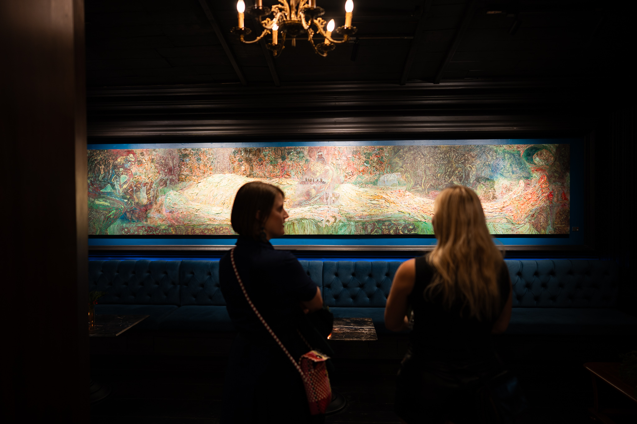 นิทรรศการเดี่ยว “Chaos Poet Knight” โดย อานนท์ เลิศพูลผล นำเสนอสมมติฐานว่าความโกลาหลในสังคม คือ “สภาวะ” ที่ไม่ได้เกิดจากความไม่สมบูรณ์ของระบบ หากแต่เป็น “โครงสร้างที่ถูกออกแบบ” ให้ดำรงอยู่ เพื่อคงอำนาจของผู้ควบคุมไว้ อานนท์ ได้นำสัญลักษณ์จากผลงาน The Gates of Hell และ The Poet ของ Auguste Rodin ซึ่งกล่าวถึงการครุ่นคิดต่อบาปและการพิพากษาในโลกหลังความตาย มาตีความใหม่ในบริบทปัจจุบันที่ “ประตูนรก” คือภาพสะท้อนของโลกมนุษย์ที่เต็มไปด้วยความรุนแรง สงคราม และการคอร์รัปชัน ในที่นี้ The Poet ไม่ได้เป็นเพียงผู้แสวงหาปัญญา เเต่คือ “ผู้บงการ” ที่เฝ้ามองความทุกข์ของผู้อื่นอย่างเยือกเย็น โดยถ่ายทอดมุมมองของ “ผู้ได้รับผลกระทบ” ผ่านกระบวนการสร้างสรรค์ผลงานที่เปิดเผยความไม่สมบูรณ์ของทั้งจิตรกรรมและคุณธรรม อ้างอิงจากภาพถ่ายและวิดีโอของเหตุการณ์ร่วมสมัย