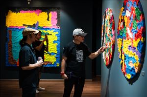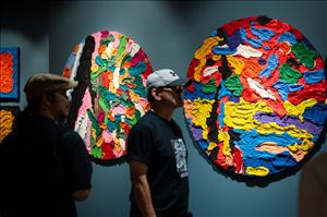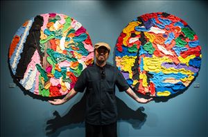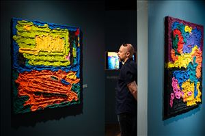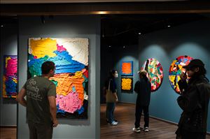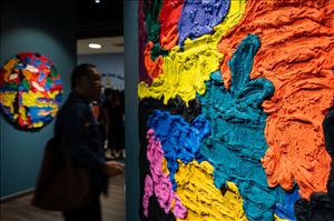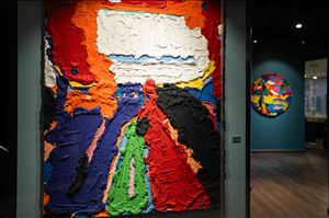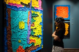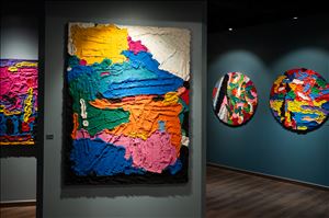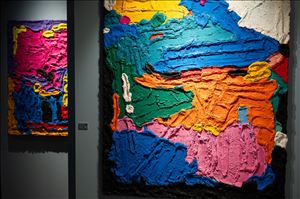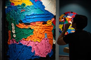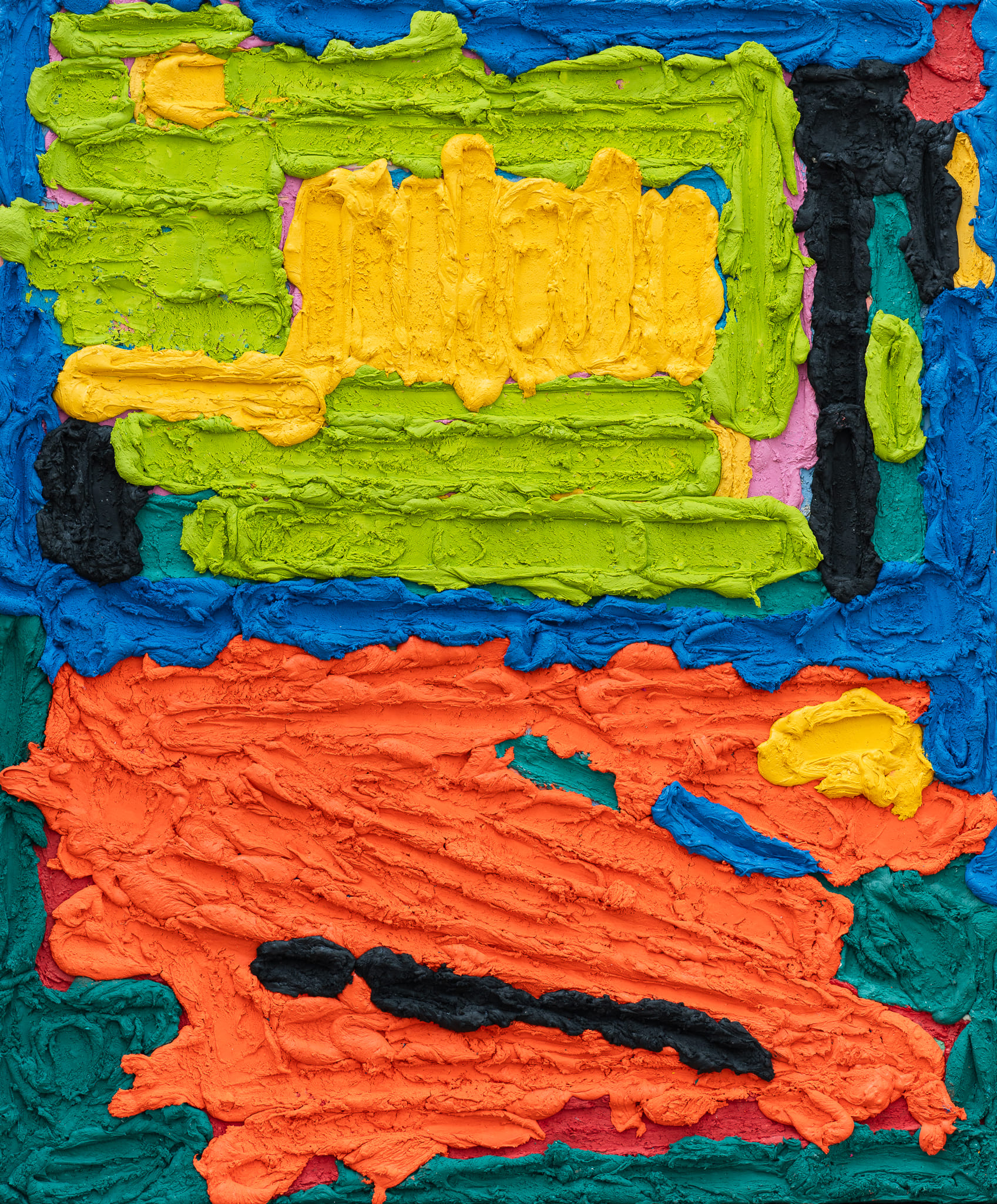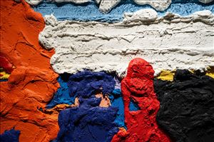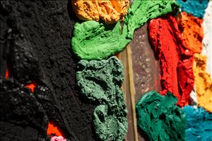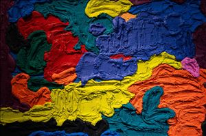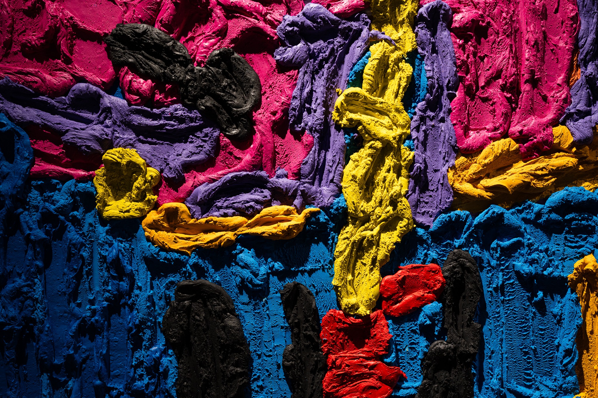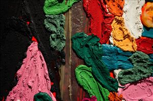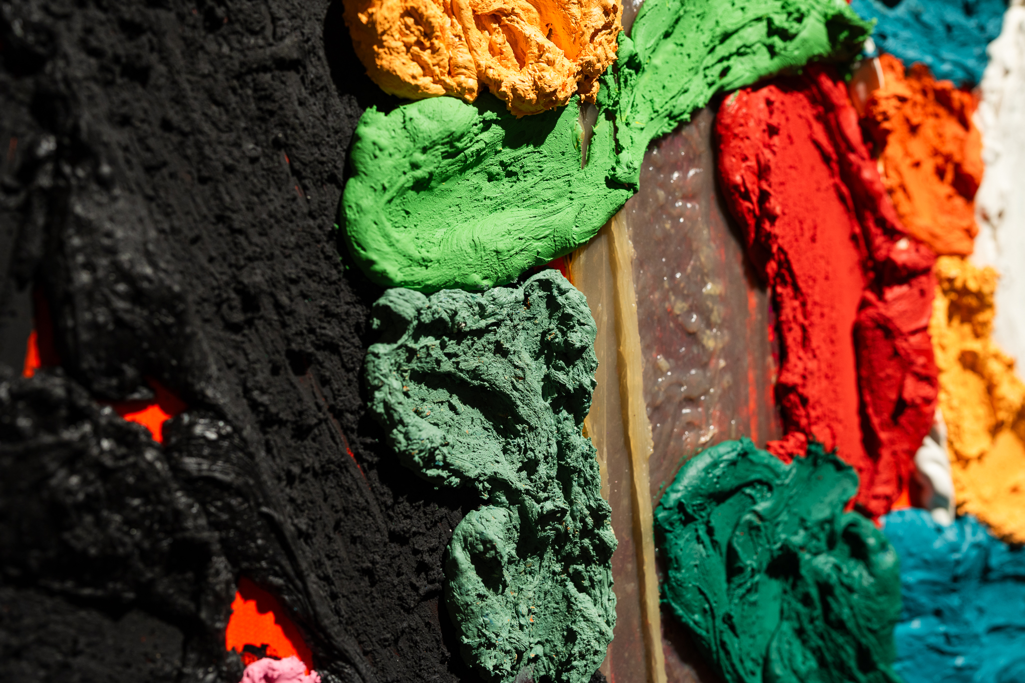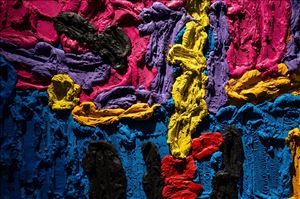 สีอุตสาหกรรมที่ให้สีสดและเด่นชัด ตลอดจนสร้างความหมายจากความเป็นปริมาตรของสี ด้วยการใช้พื้นผิวนูนหนาและ