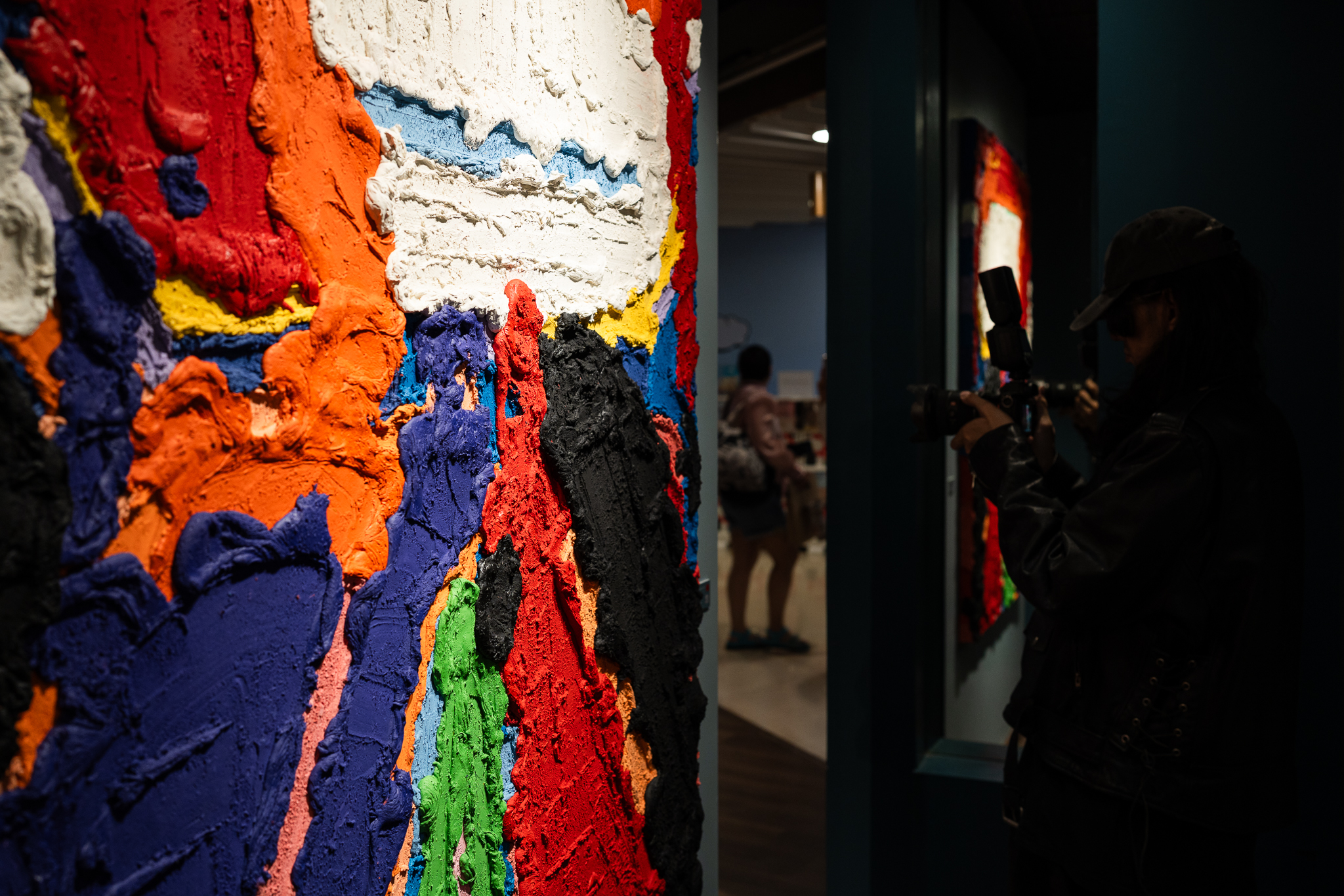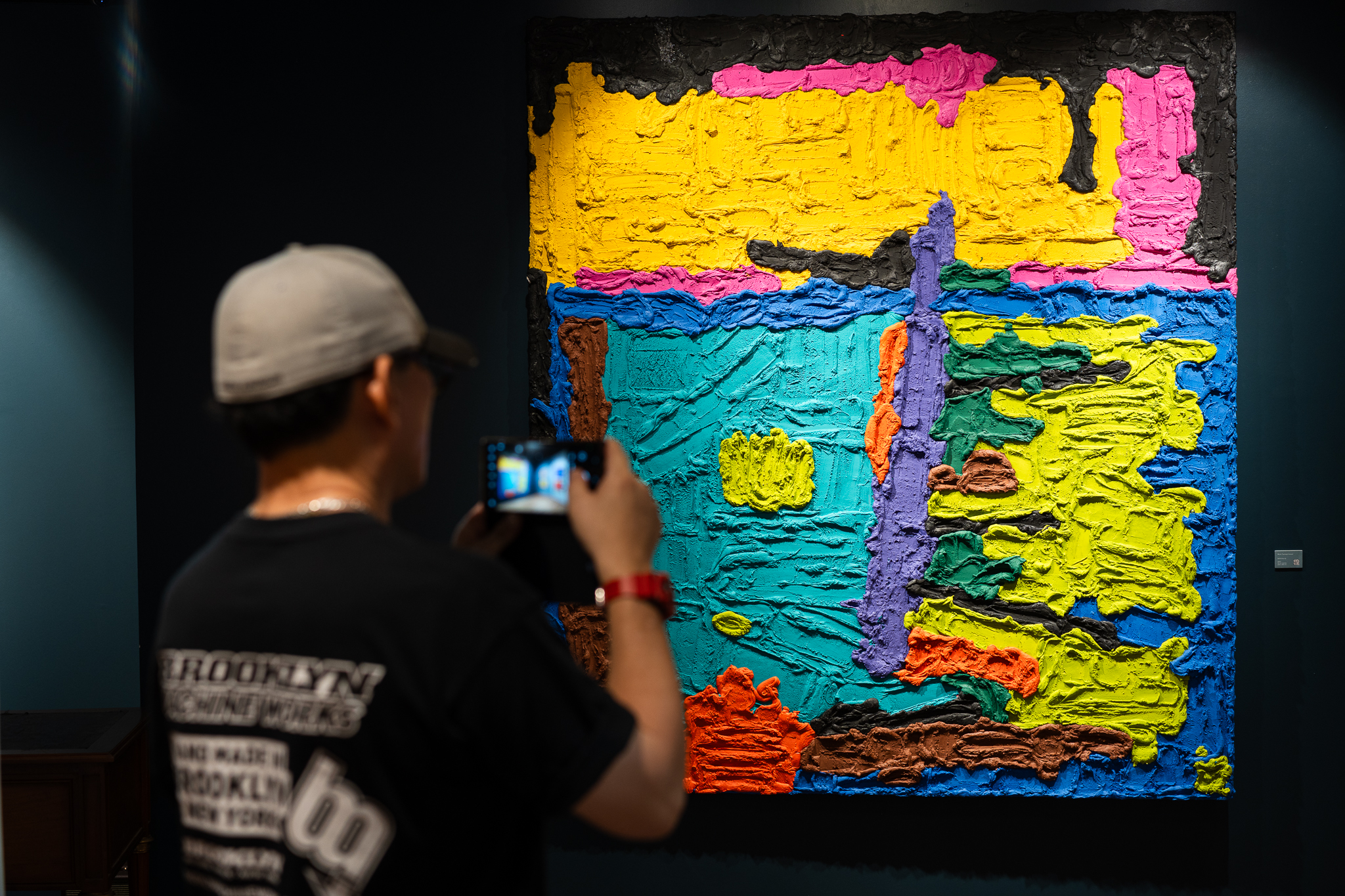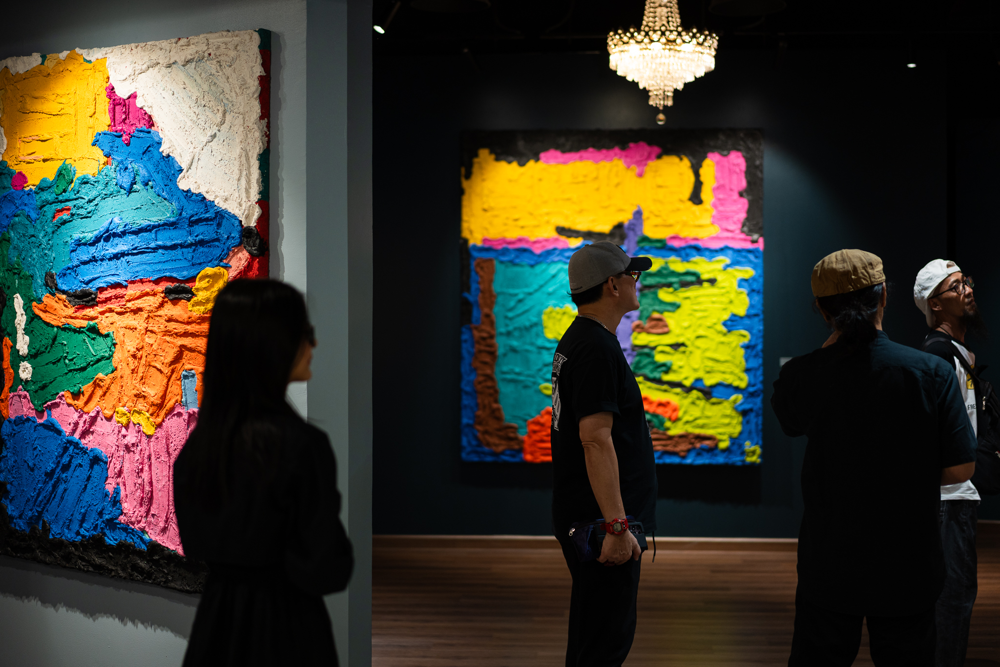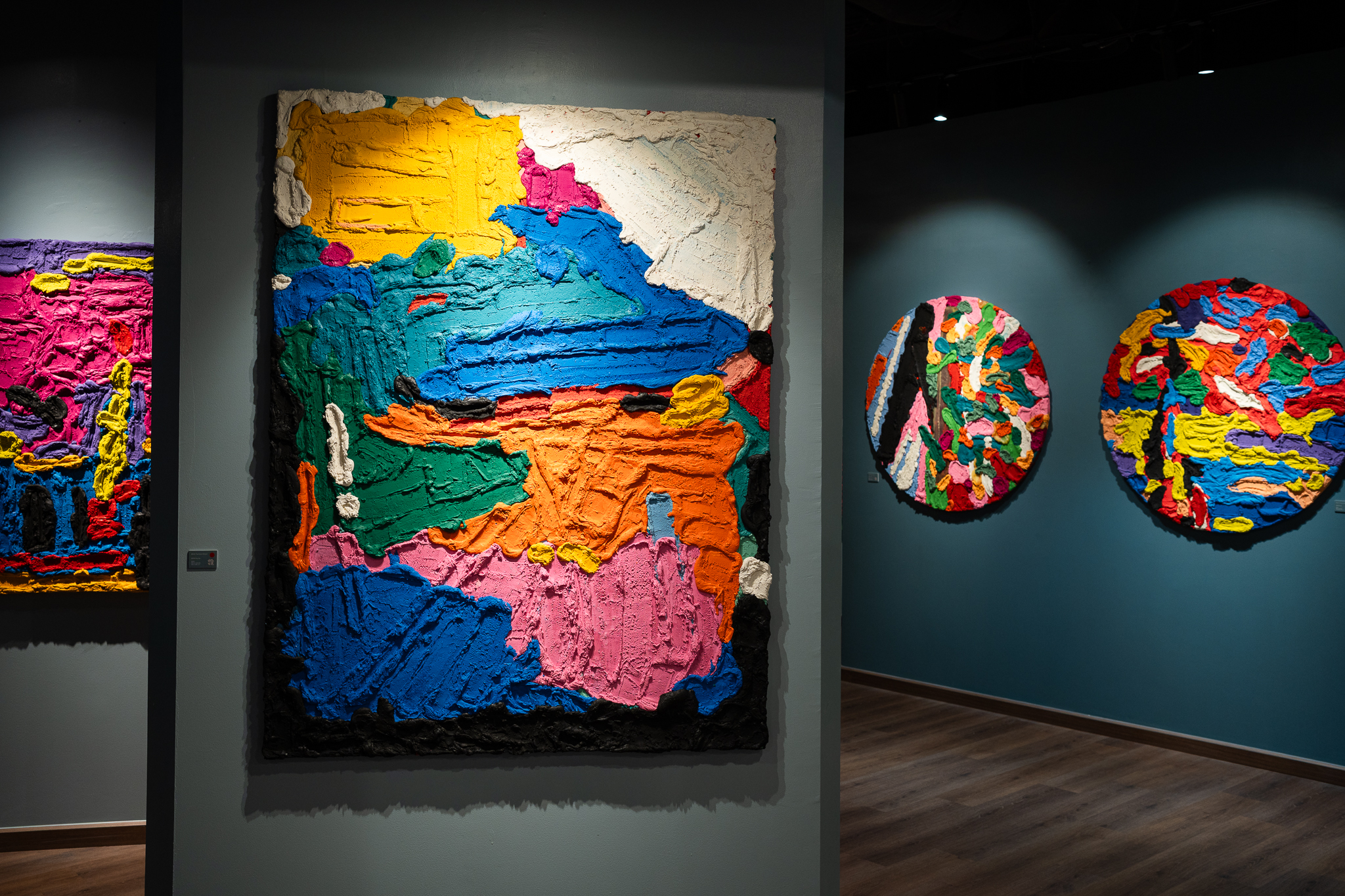 artistic process of abstract art, which not only focuses on expressing emotions but also meticulously plans every line, shape, and color, emphasizing the historical stories of color and connecting them to create multiple layers of color with free forms. This creates an overlapping dimension that reveals the changing meaning of color over time and in different social contexts. He also