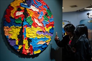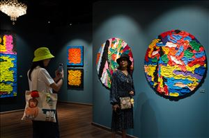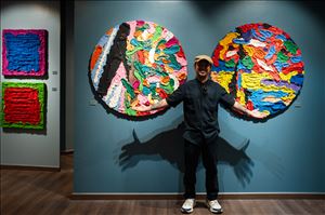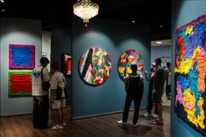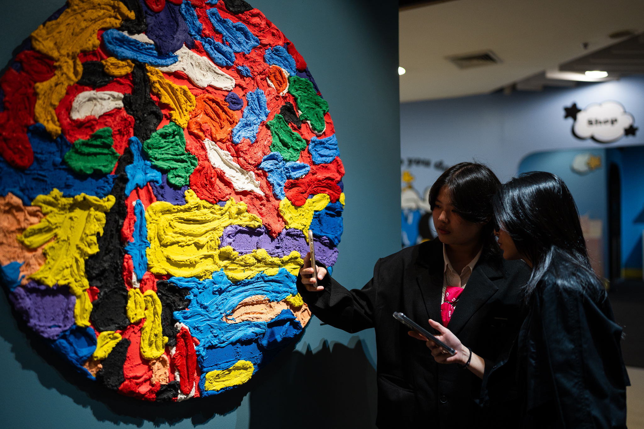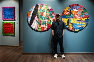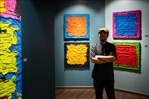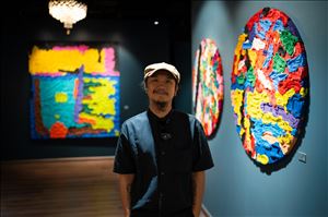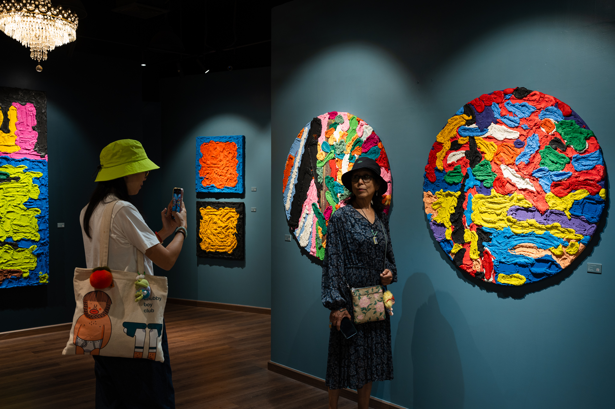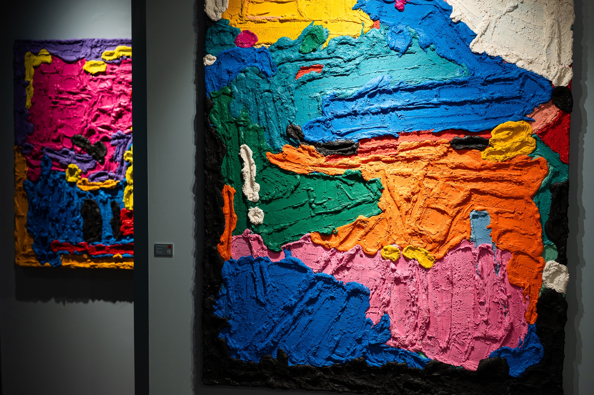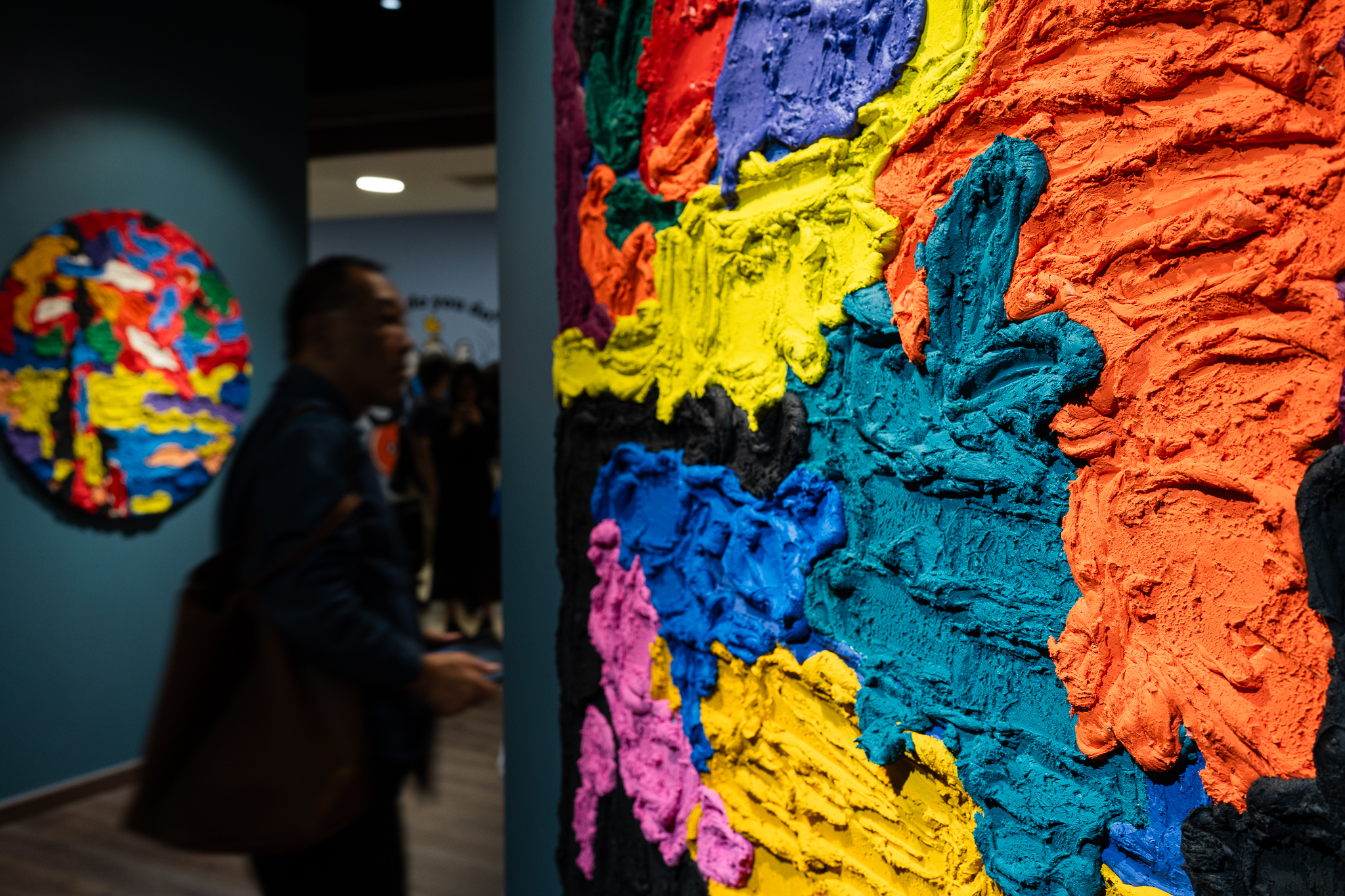 artistic process of abstract art, which not only focuses on expressing emotions but also meticulously plans every line, shape, and color, emphasizing the historical stories of color and connecting them to create multiple layers of color with free forms. This creates an overlapping dimension that reveals the changing meaning of color over time and in different social contexts. He also