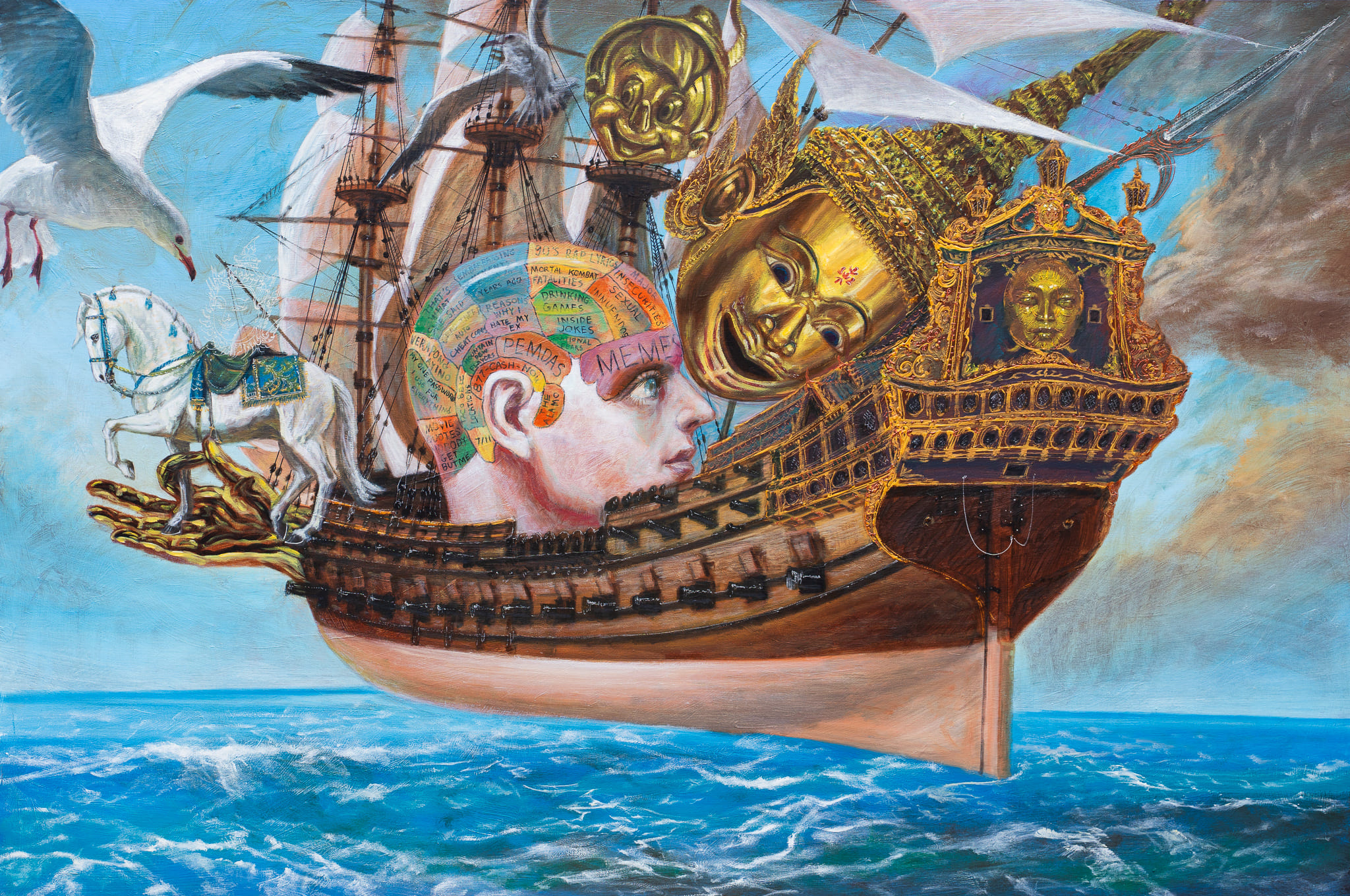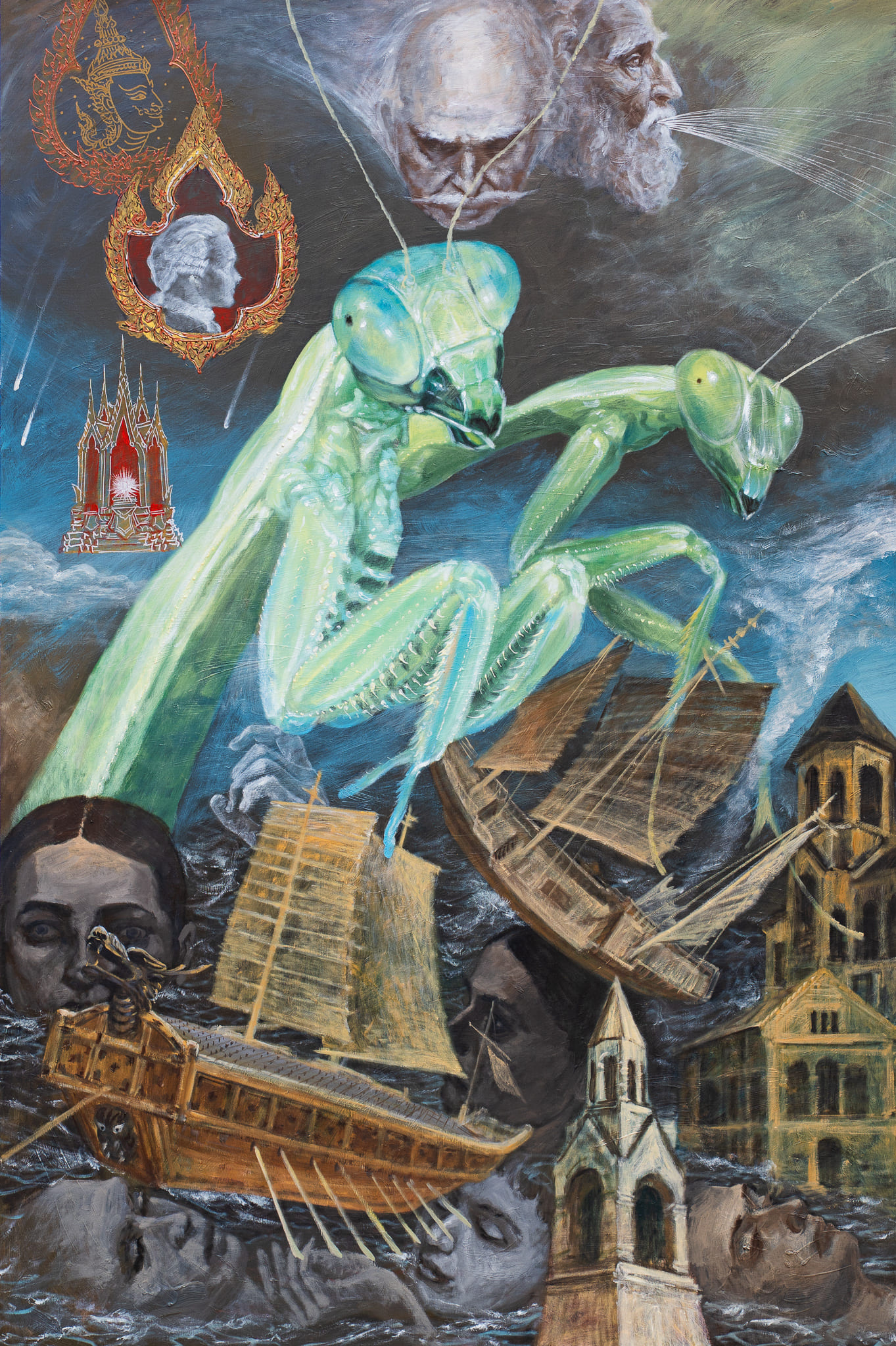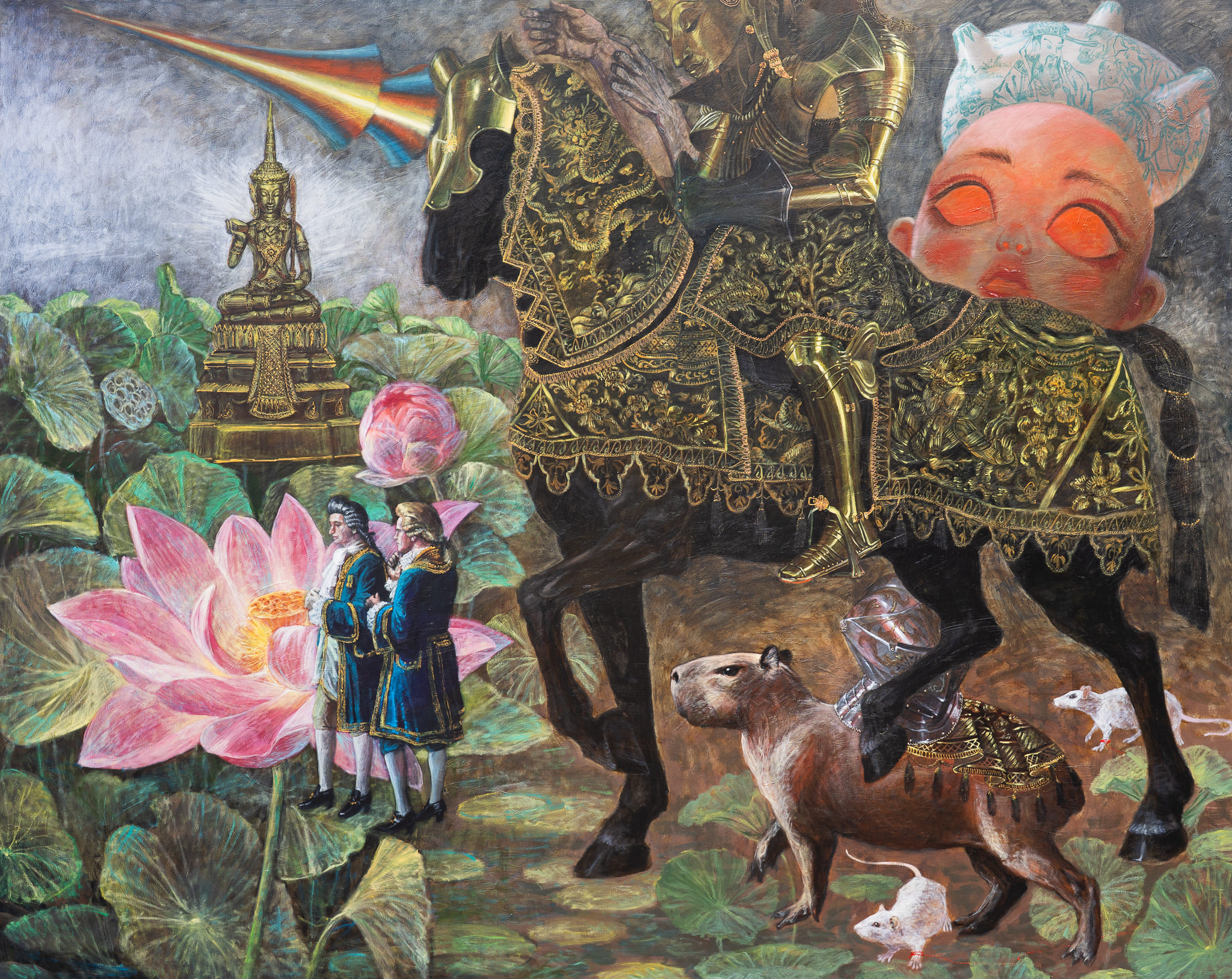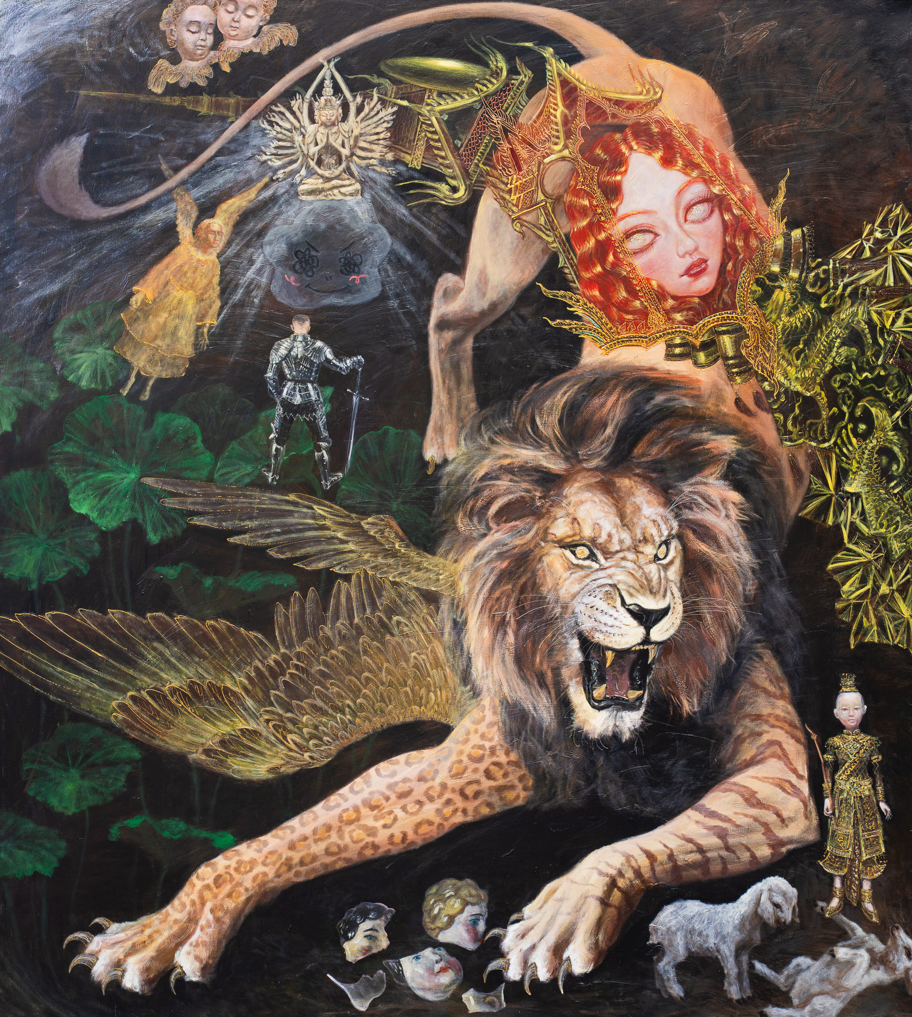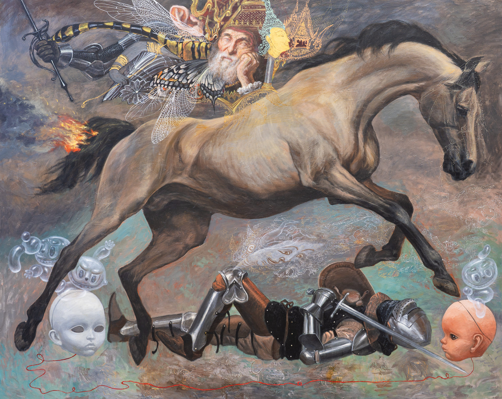 The dreamscape of Ayino — Verapong Sritrakulkitjakarn — emerges from a convergence of surrounding inspirations and the deeper strata of thought, emotion, and memory. In “Dream,” he transports viewers into his inner world through oil paintings populated by stories, characters, cartoons, animate and inanimate beings—each distilled from personal experience and reshaped through intuitive, symbolic composition.