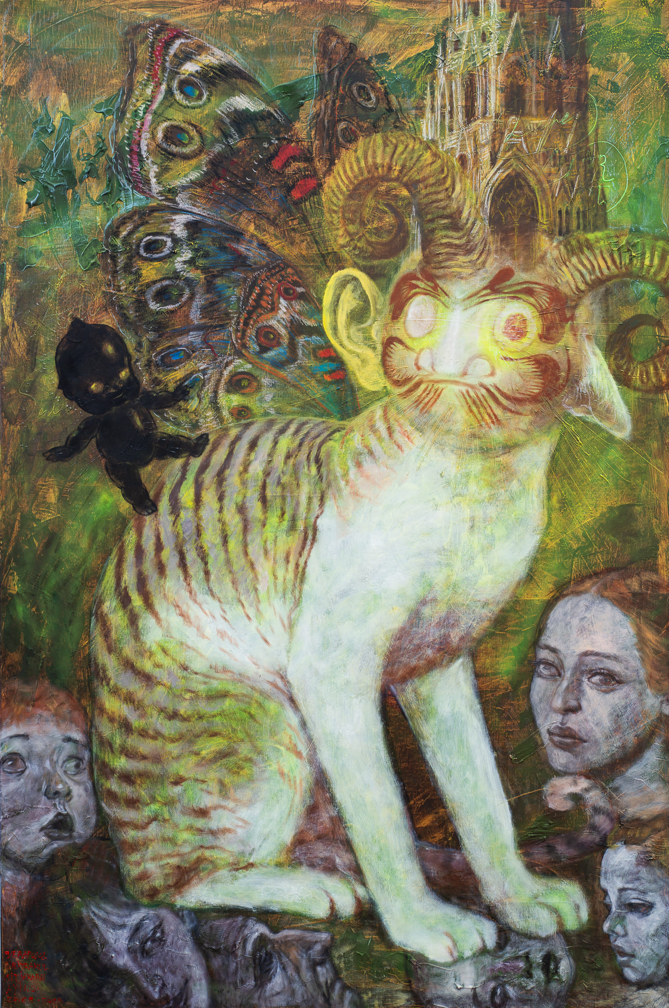 Ayino’s distinctive linework and visual rhythm open a threshold into a suspended, introspective realm. His paintings invite contemplation, offering symbols that unfold differently for each viewer. For the artist, creation becomes