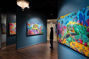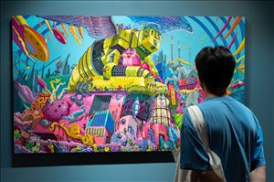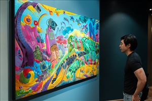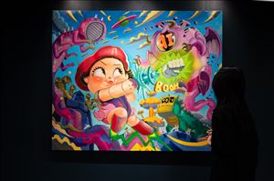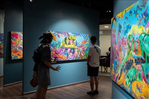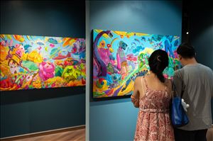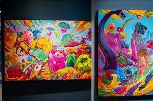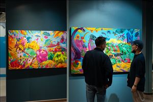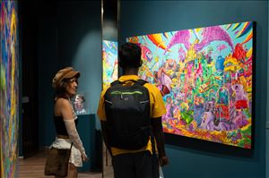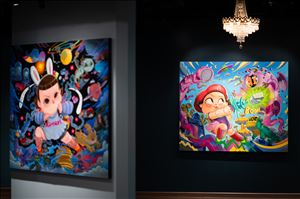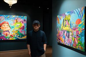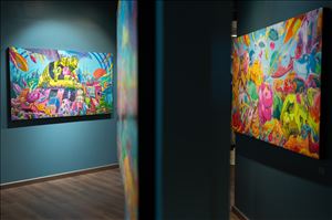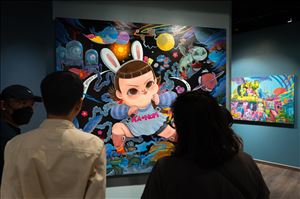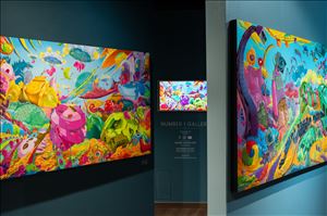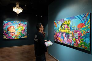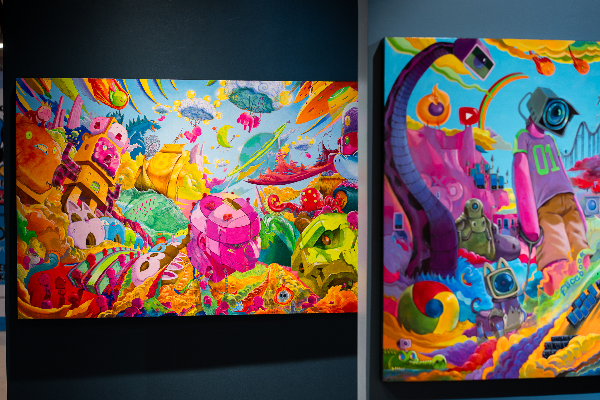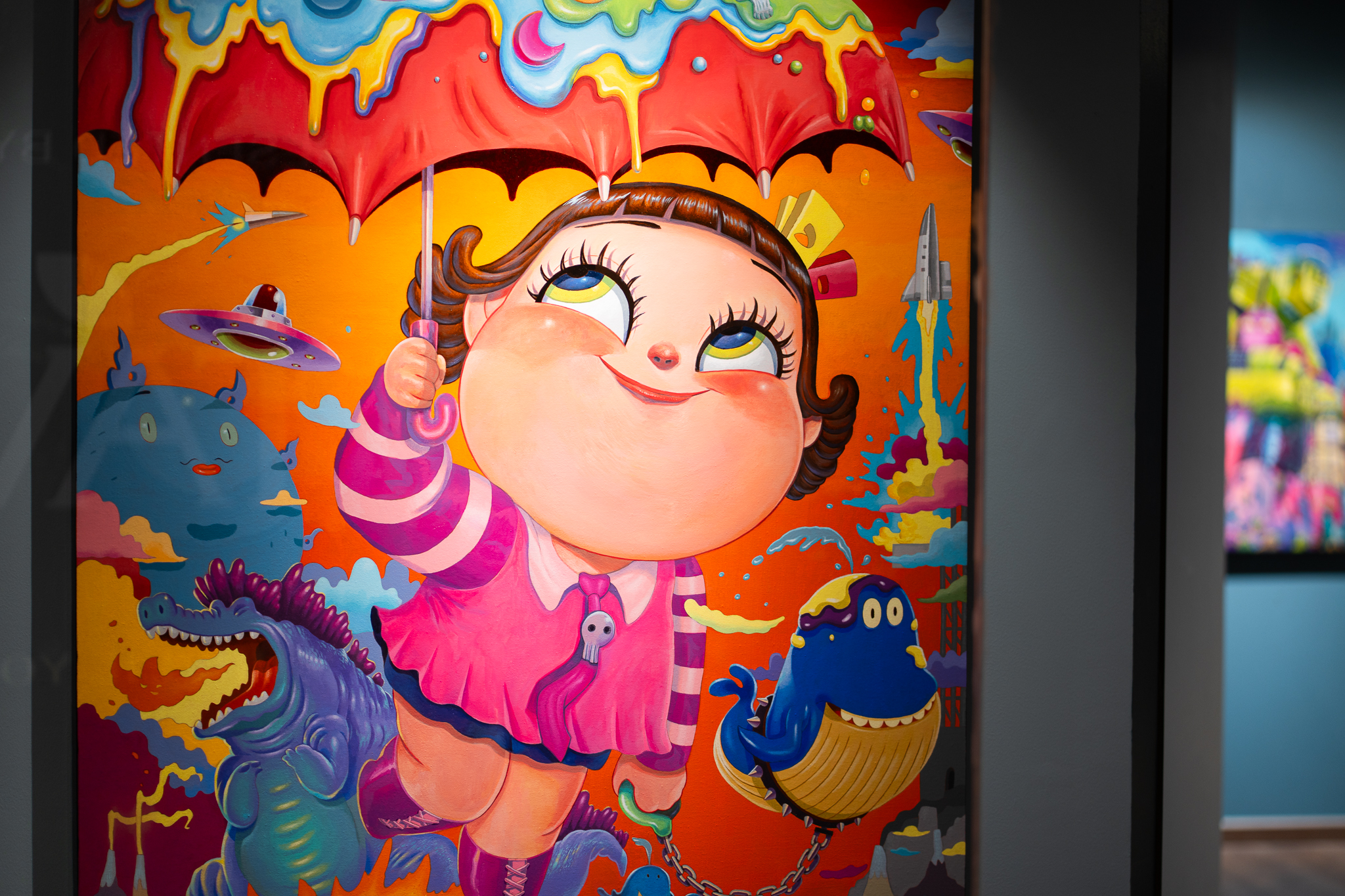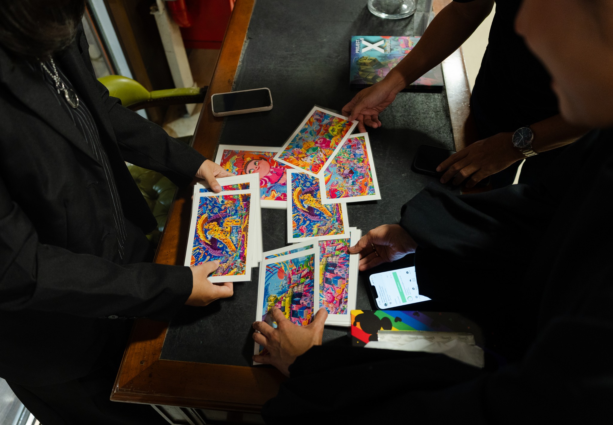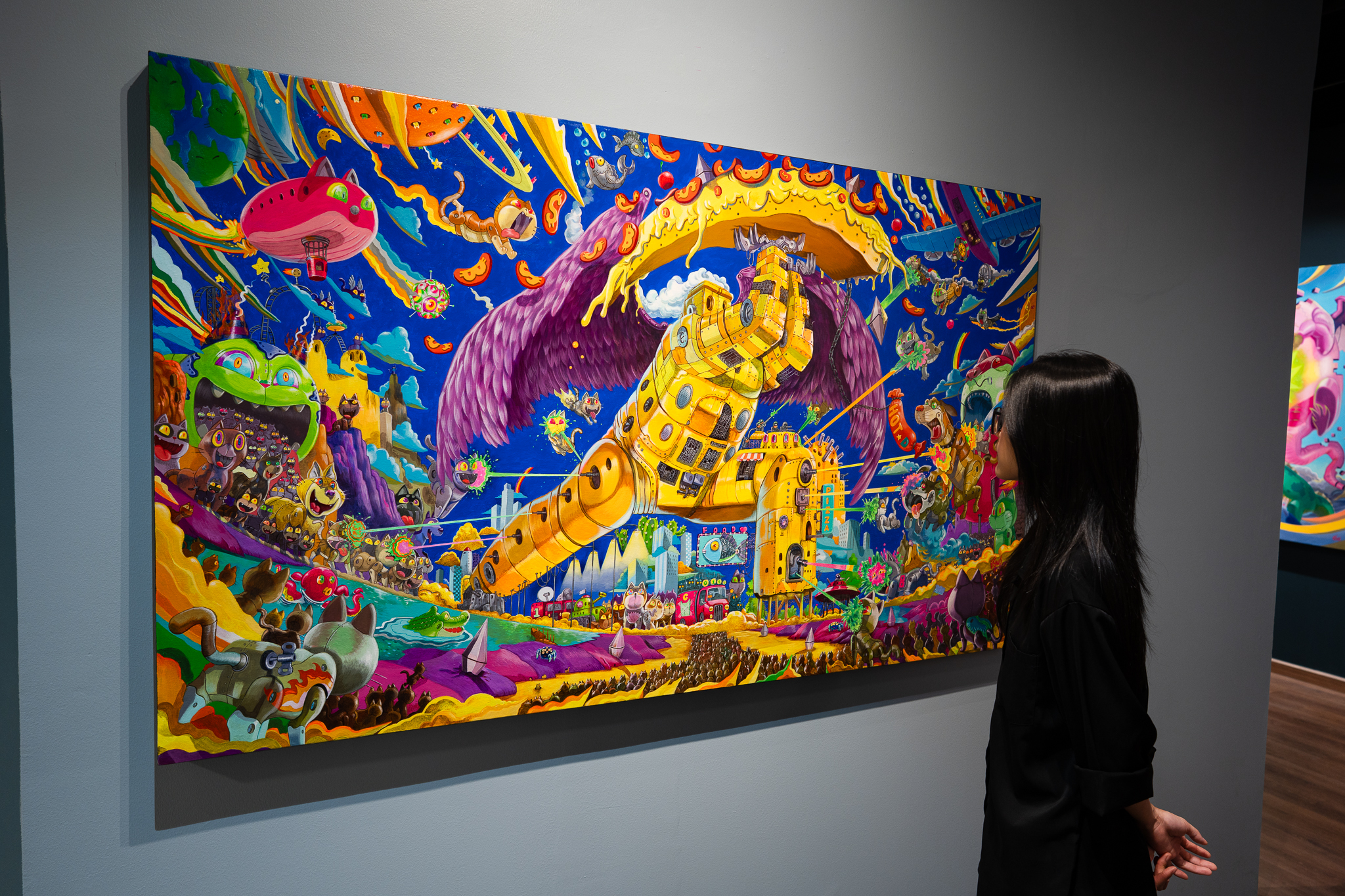 “𝑷𝒓𝒐𝒋𝒆𝒄𝒕 𝑿 𝒕𝒐 𝒕𝒉𝒆 𝑷𝒐𝒘𝒆𝒓 𝒐𝒇 5: 𝑻𝒂𝒏𝒈𝒊𝒃𝒍𝒆” marks the fifth solo exhibition by Chaiporn Panichrutiwong, Thailand’s first-ever recipient of the Designer of the Year 2023 award in the Digital Design category. Renowned in the world of computer digital animation and NFTs, Chaiporn presents a new series of artworks on canvas transforming his own purely digital NFT creations, which cannot be physically touched in their original form, into tangible paintings. Through his masterful and distinctive brushwork, these once-intangible digital visions are brought into the physical world. Some pieces in this series also continue to feature the artist’s beloved and charming girl character, “Nong Kanom,” as in his previous works.