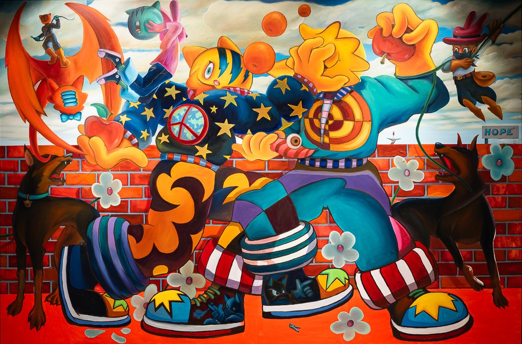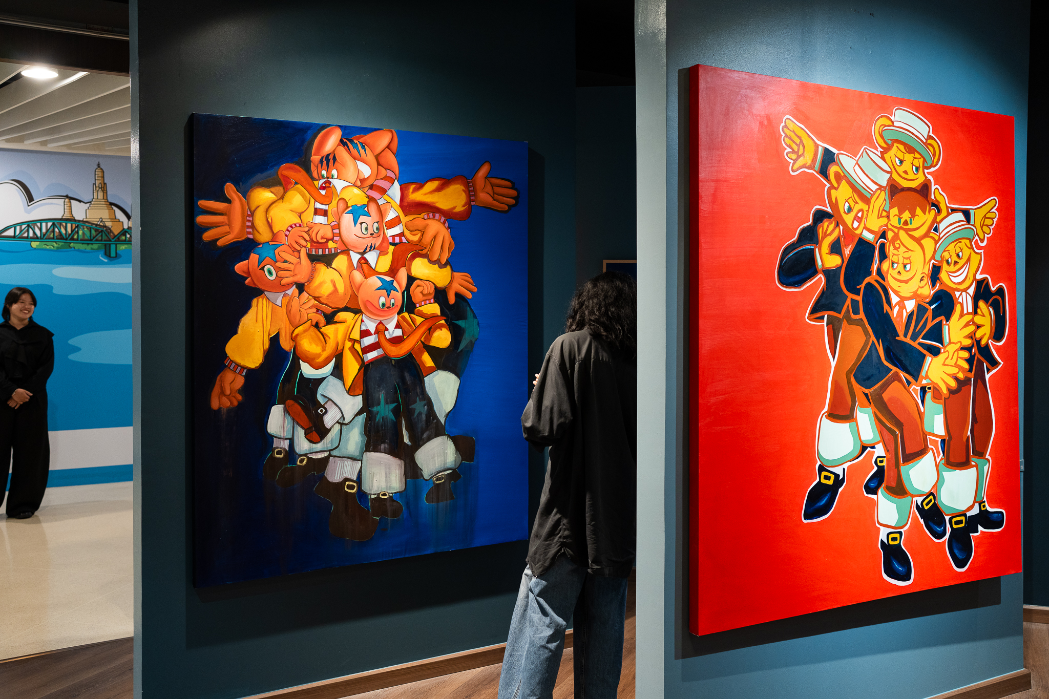 แรงบันดาลใจจากคอมิก ภาพยนตร์ยอดนิยม แอนิเมชัน และการเดินทางท่ามกลางพิพิธภัณฑ์ — ทั้งหมดนี้ถูกแปรรูปเป็นภาษาใหม่ที่เฉียบคมและรุนแรงบนผืนผ้าใบ คาแรกเตอร์ไฮบริดที่ JAYOTO สร้างขึ้นจึงมิใช่ตัวละครธรรมดา หากเป็น “ร่างแทน” ของความสัมพันธ์อันย้อนแย้งระหว่างความไร้สาระกับความจริงจัง ระหว่างการเข้าสังคมกับการโดดเดี่ยว