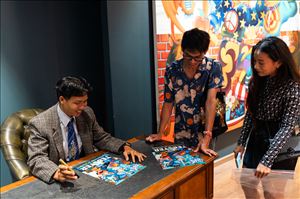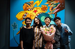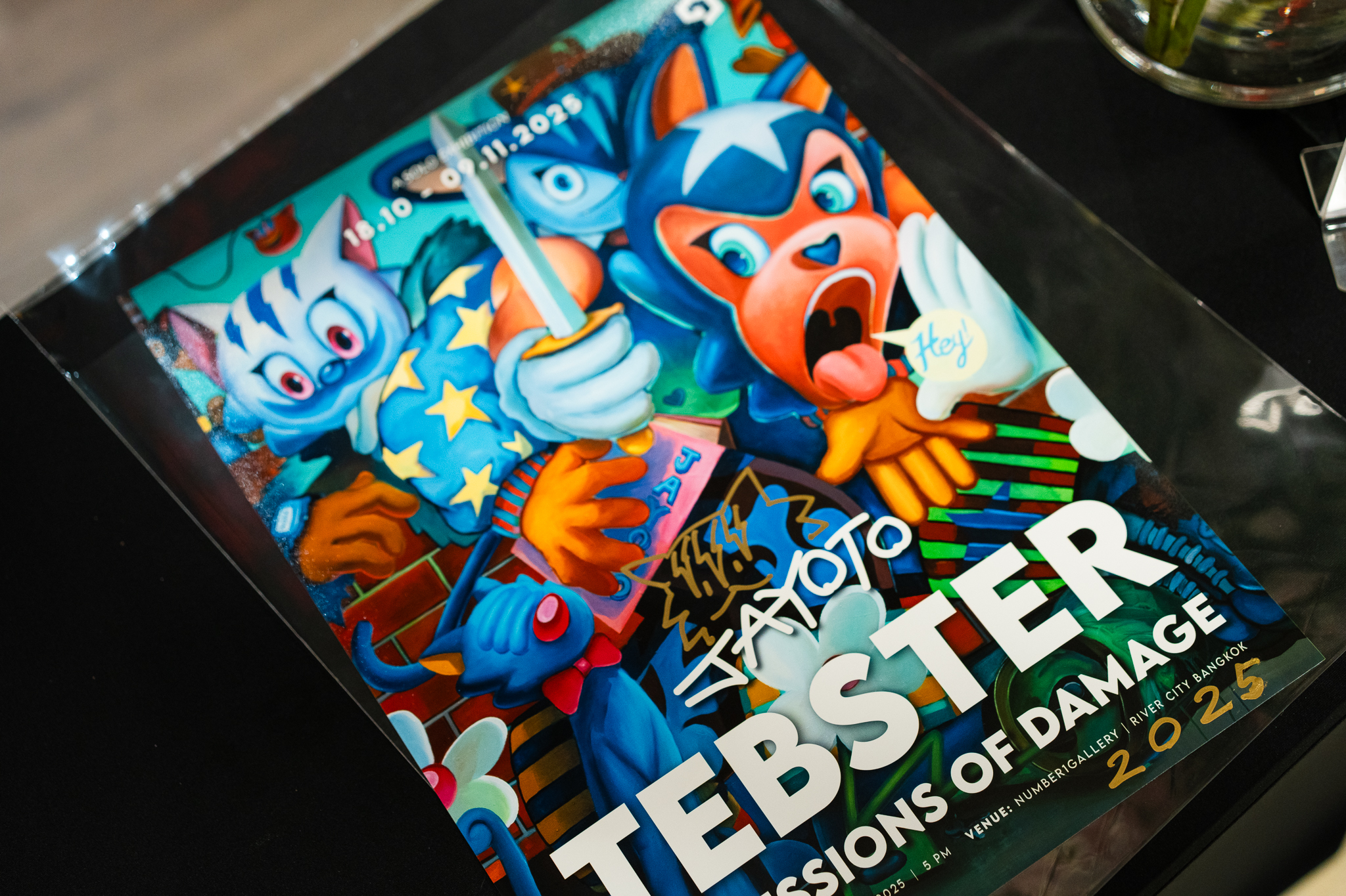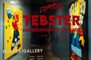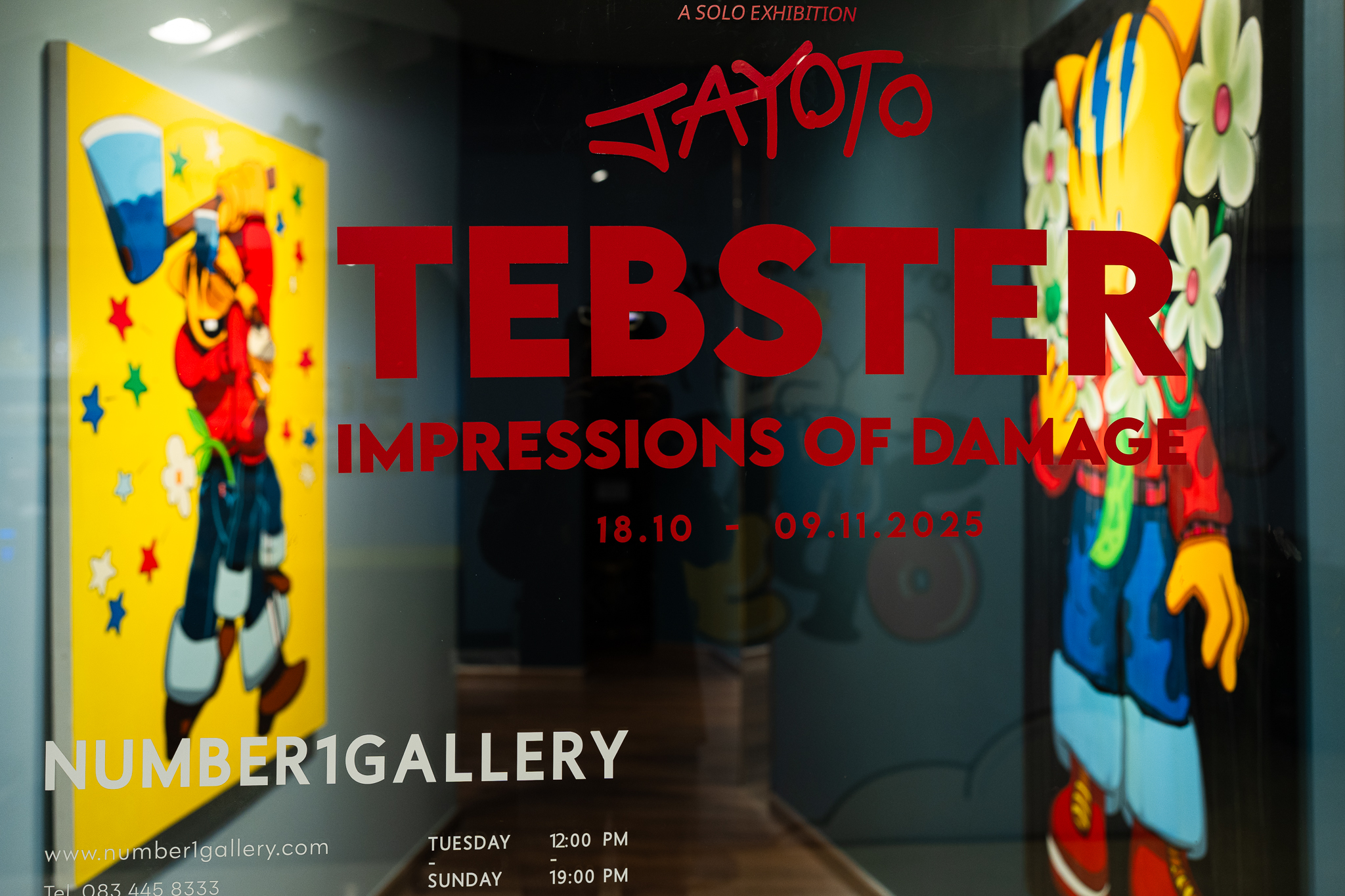 Tebster ศิลปิน JAYOTO ได้สร้างสรรค์โลกเสมือนที่มิได้เป็นเพียงฉากเหนือจริง หากแต่เป็นพื้นที่แห่งการตีความและการเผชิญหน้าระหว่างความทรงจำ วัฒนธรรมป๊อป และร่องรอยของศิลปะในประวัติศาสตร์ ผลงานแต่ละชิ้นจึงมิได้เพียงถ่ายทอดภาพ หากเป็นการบันทึกพลังงานอันไม่หยุดนิ่ง ที่สั่นสะเทือนอยู่ในทุกเส้นสายและสีสัน